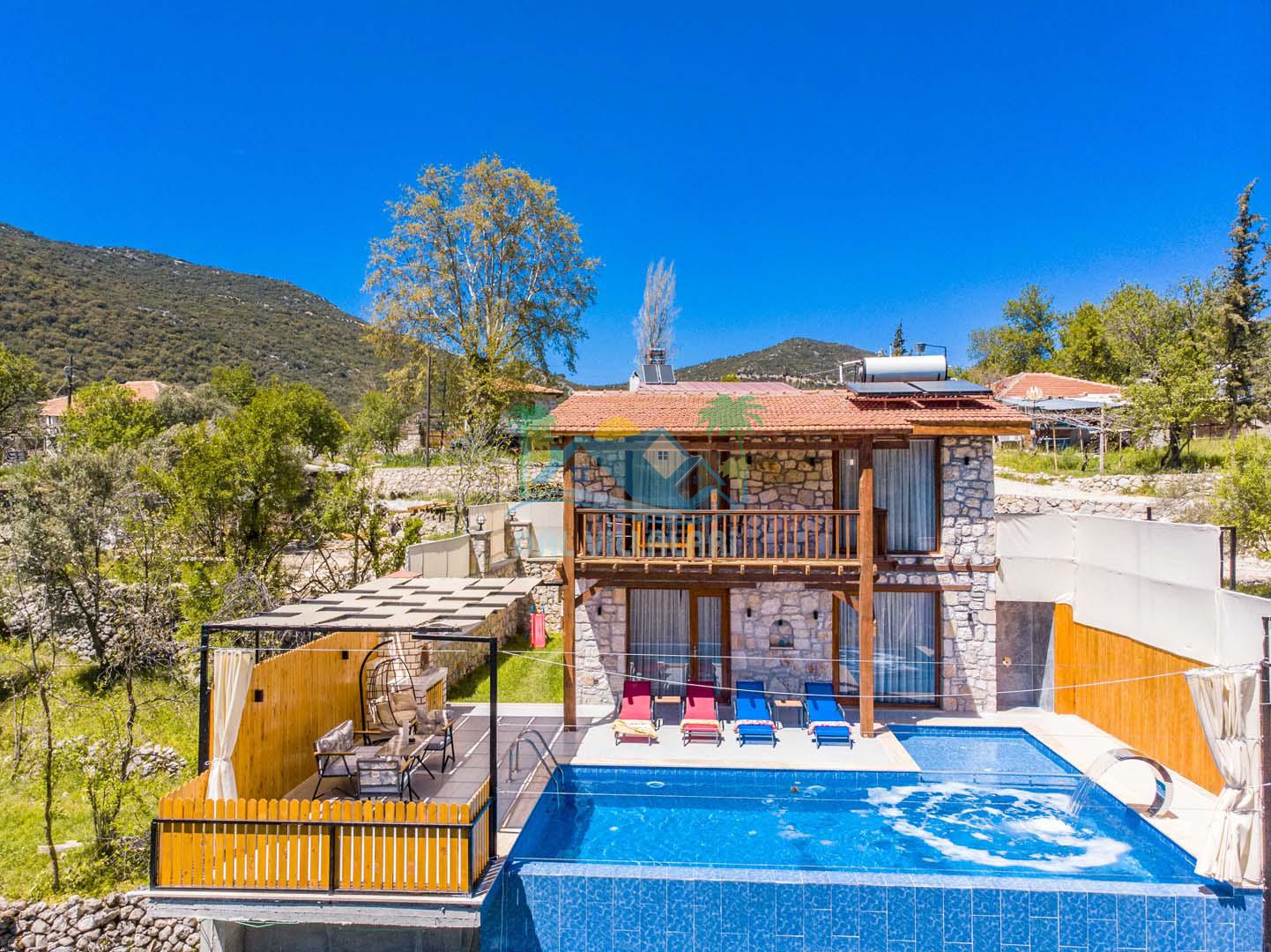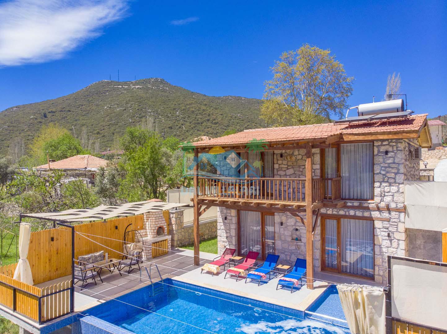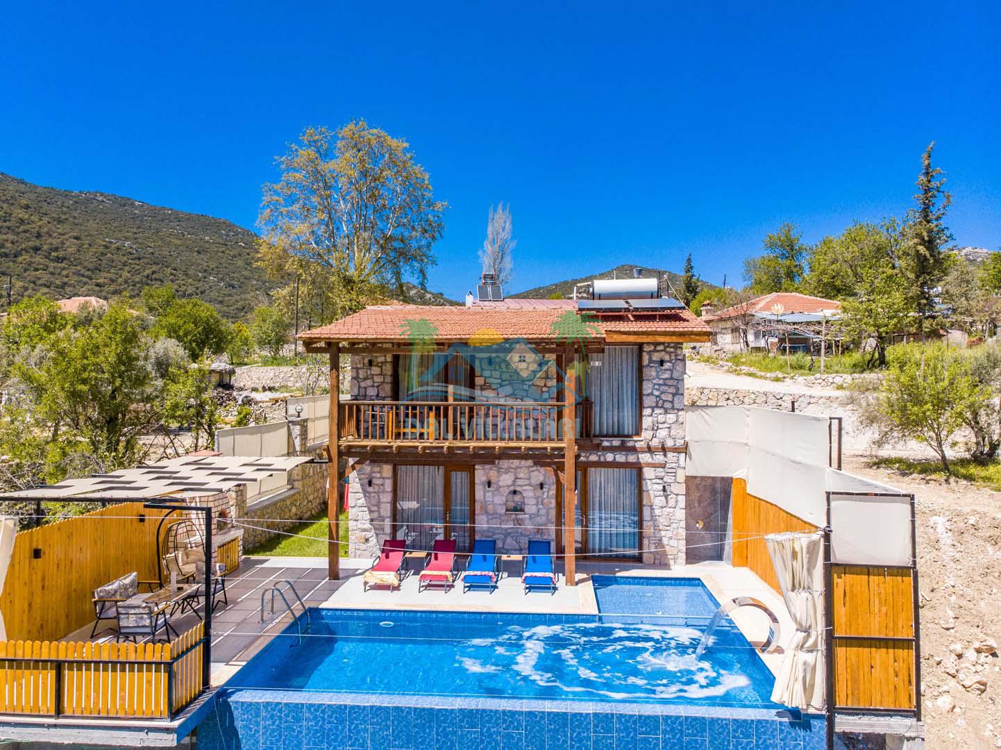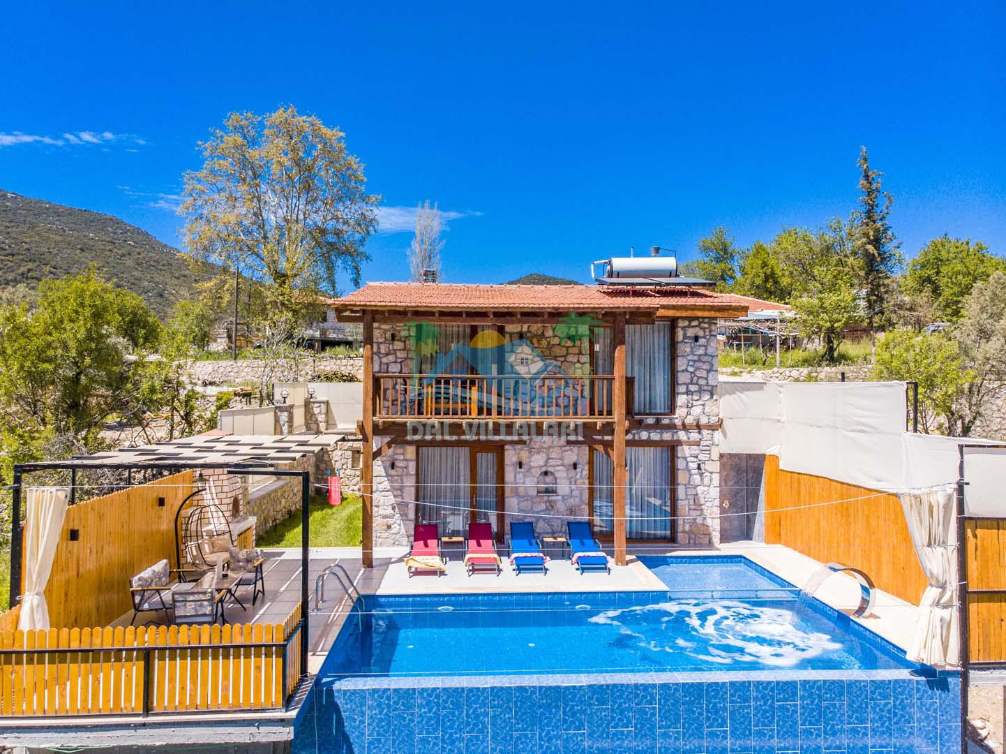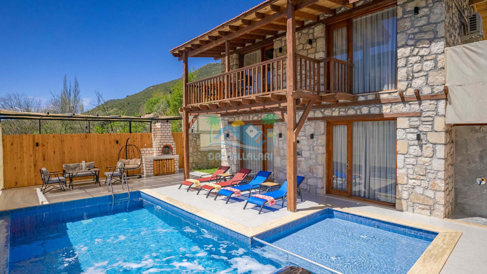Antalya Kaş Kalkan'ın Sarıbelen mevkiinde konumlanmış, çekirdek ailelere ve balayı çiftlerine hitap eden, özel havuz ve jakuzi keyfi sunan, geniş bahçe alanına sahip, çocuklu aileler için çocuk oyun alanı ve çocuk havuzu olan, doğa manzarasına hakim kiralık tatil villasıdır.