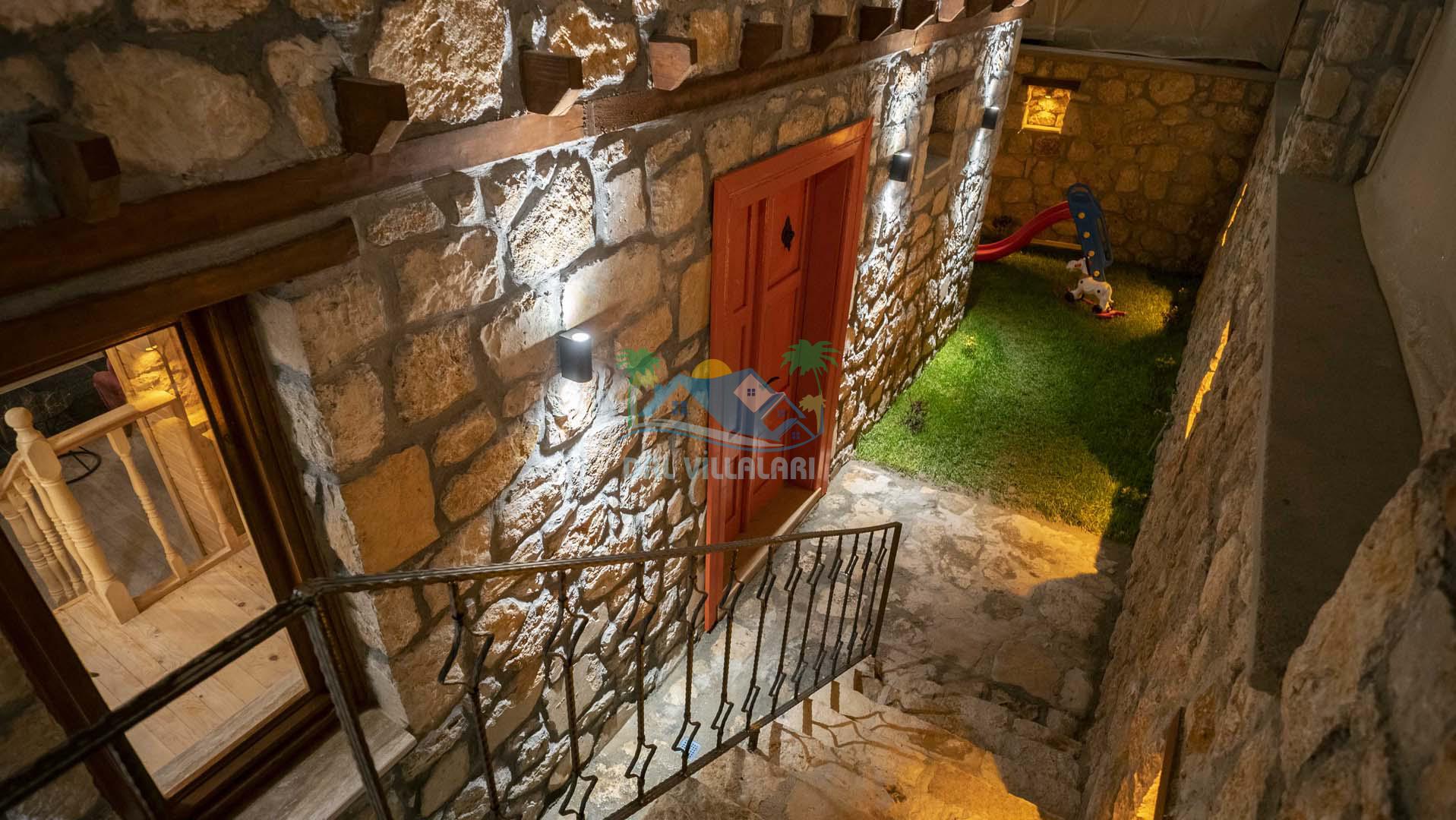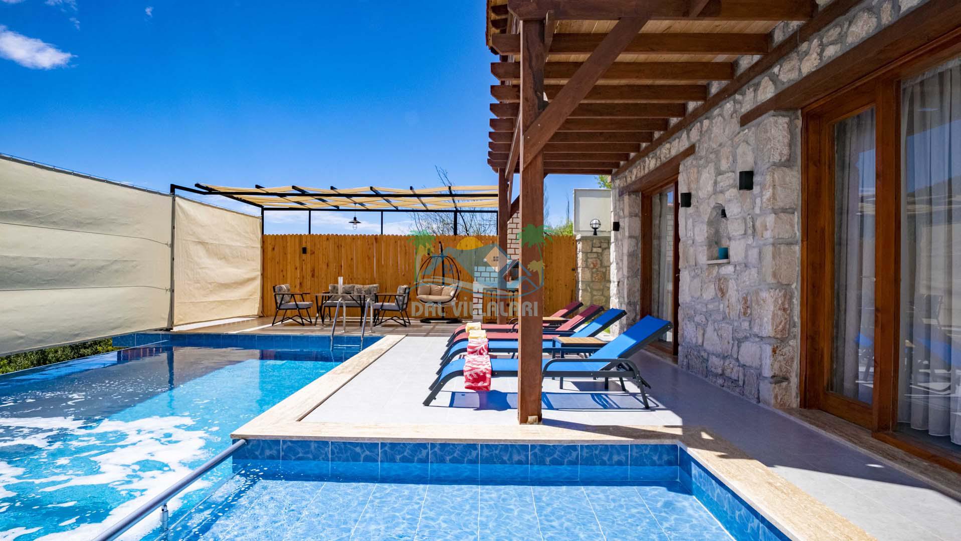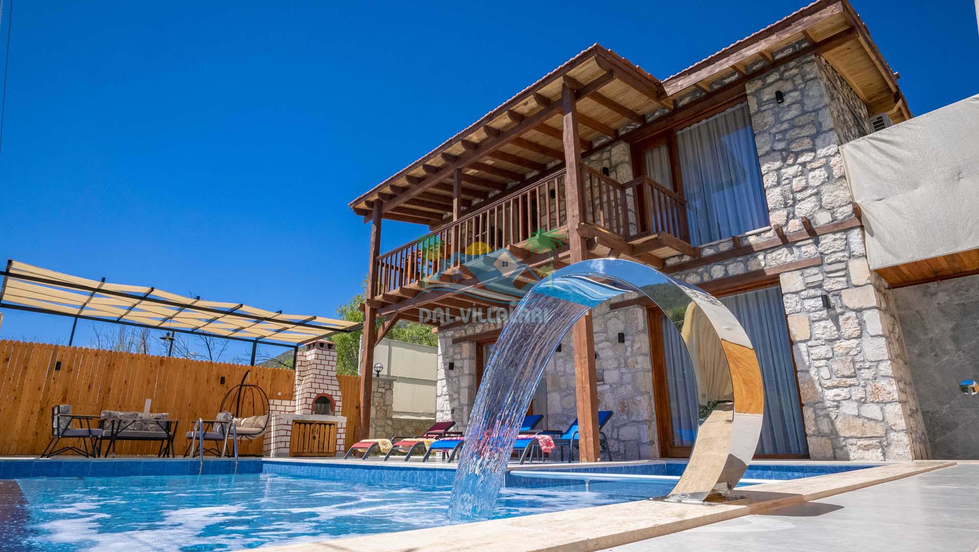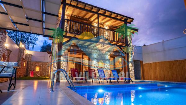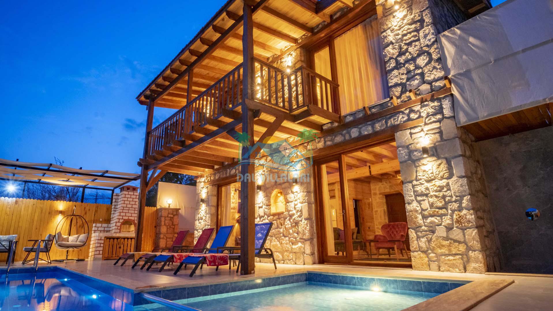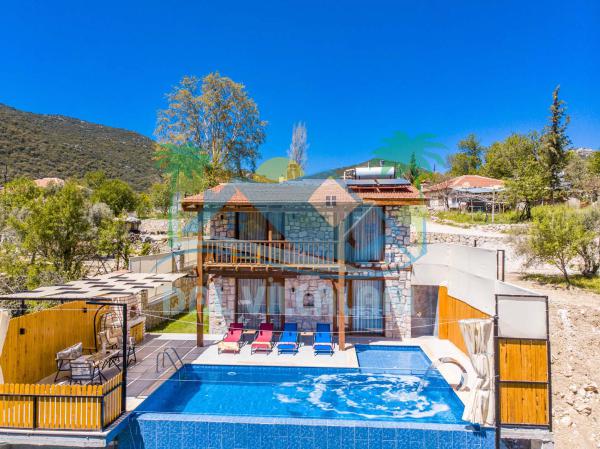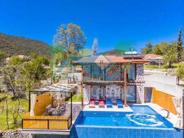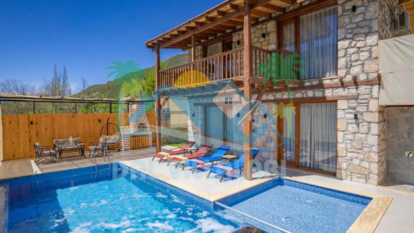 Antalya Kaş Kalkan'ın Sarıbelen mevkiinde konumlanmış, çekirdek ailelere ve balayı çiftlerine hitap eden, özel havuz ve jakuzi keyfi sunan, geniş bahçe alanına sahip, çocuklu aileler için çocuk oyun alanı ve çocuk havuzu olan, doğa manzarasına hakim kiralık tatil villasıdır.