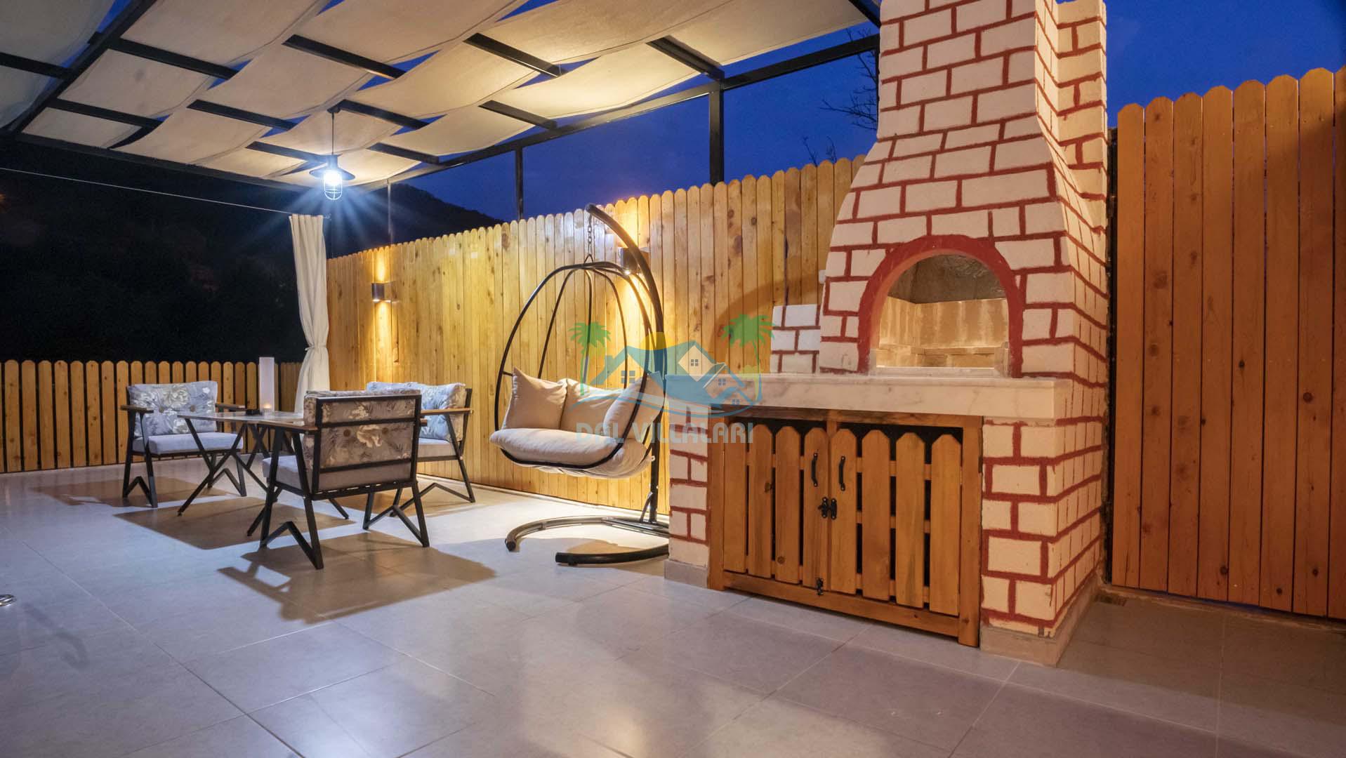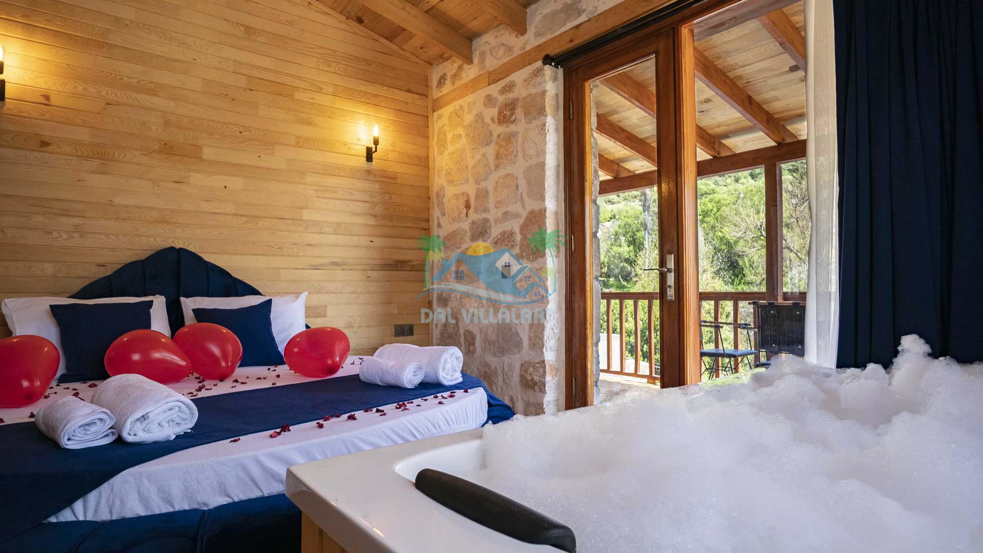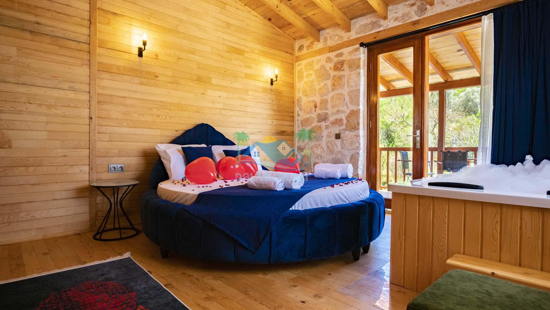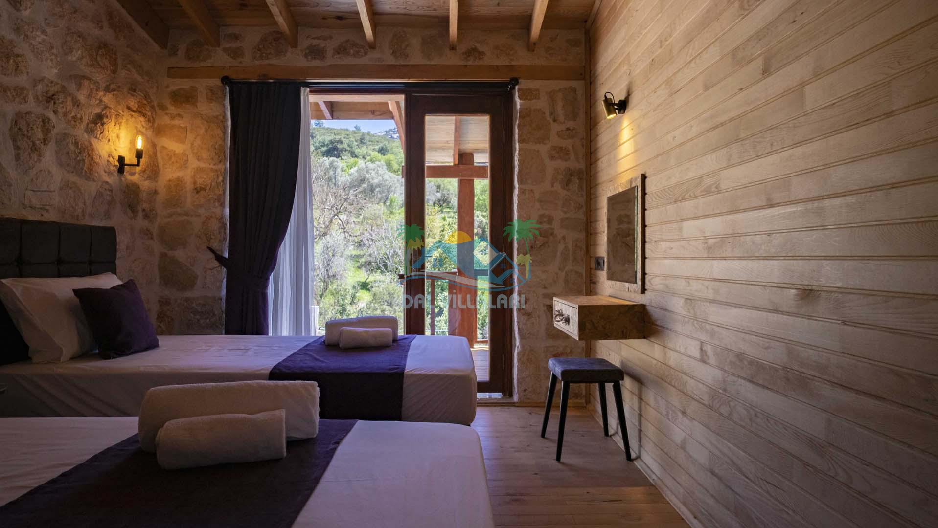 Antalya Kaş Kalkan'ın Sarıbelen mevkiinde konumlanmış, çekirdek ailelere ve balayı çiftlerine hitap eden, özel havuz ve jakuzi keyfi sunan, geniş bahçe alanına sahip, çocuklu aileler için çocuk oyun alanı ve çocuk havuzu olan, doğa manzarasına hakim kiralık tatil villasıdır.