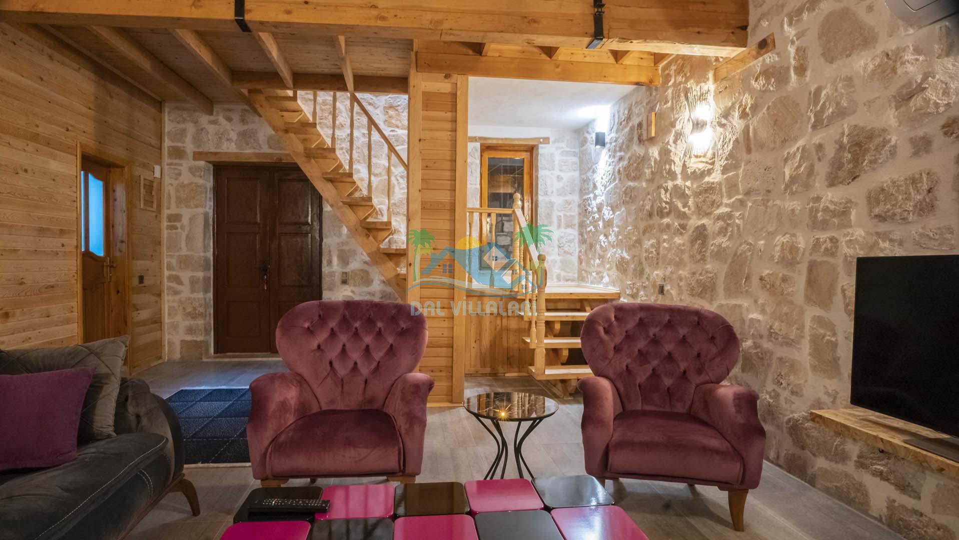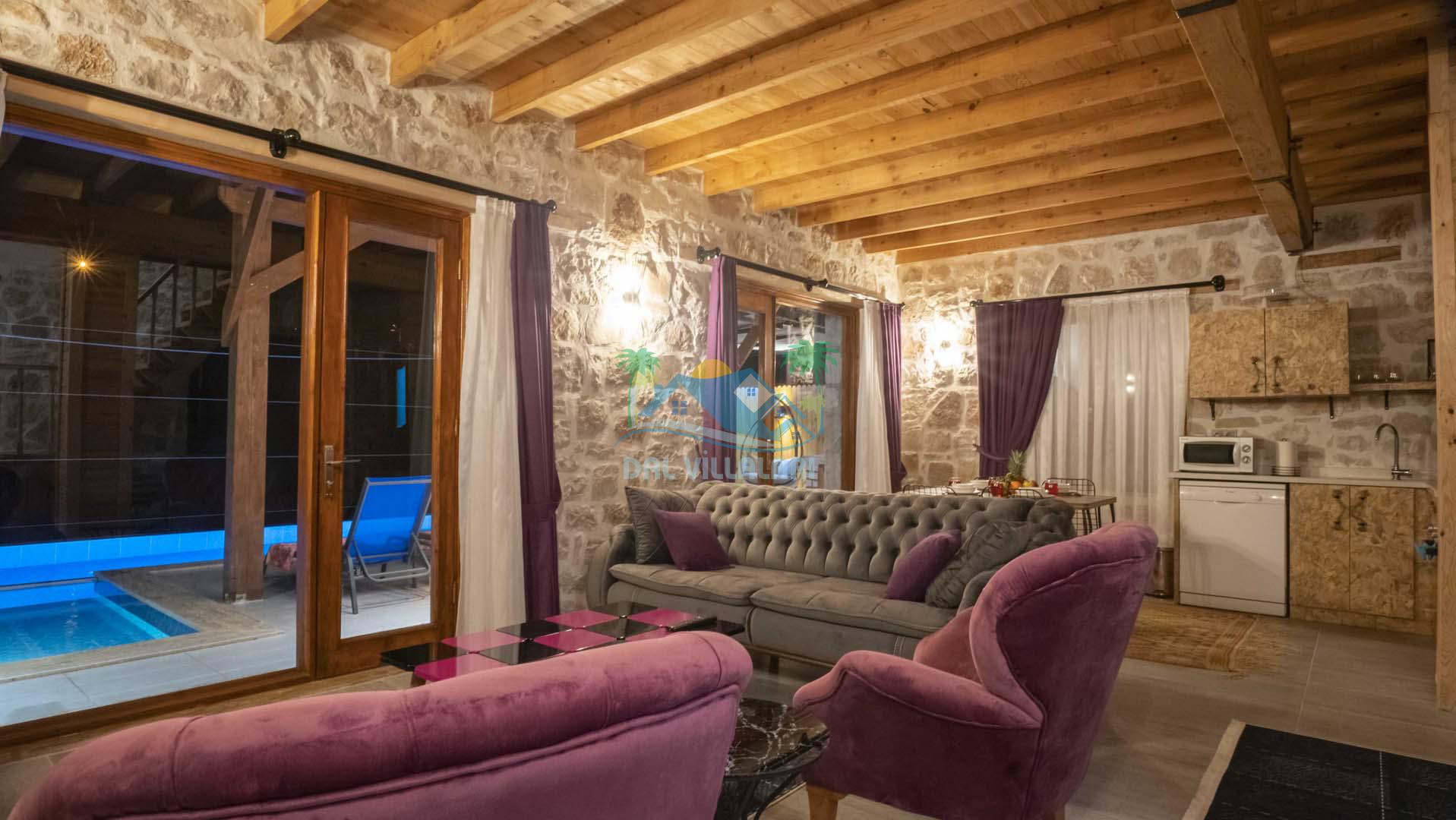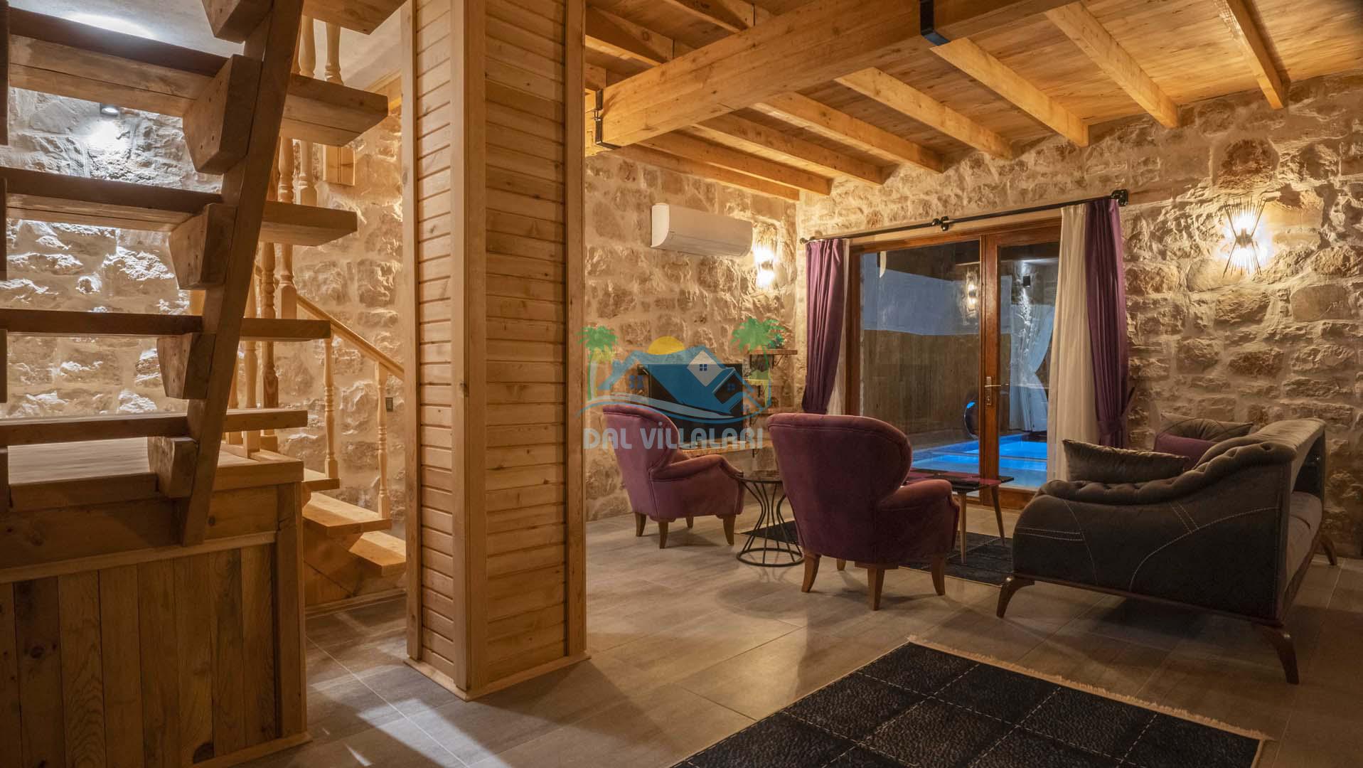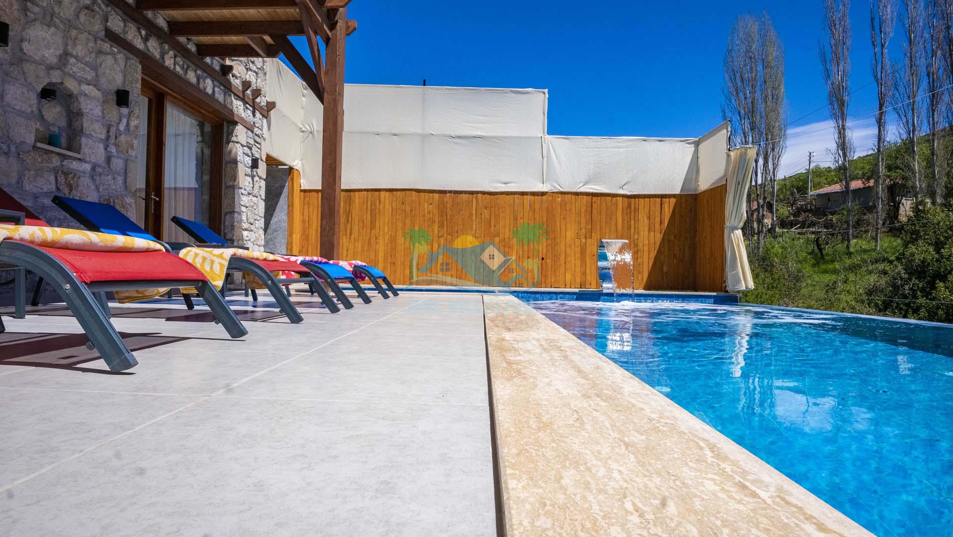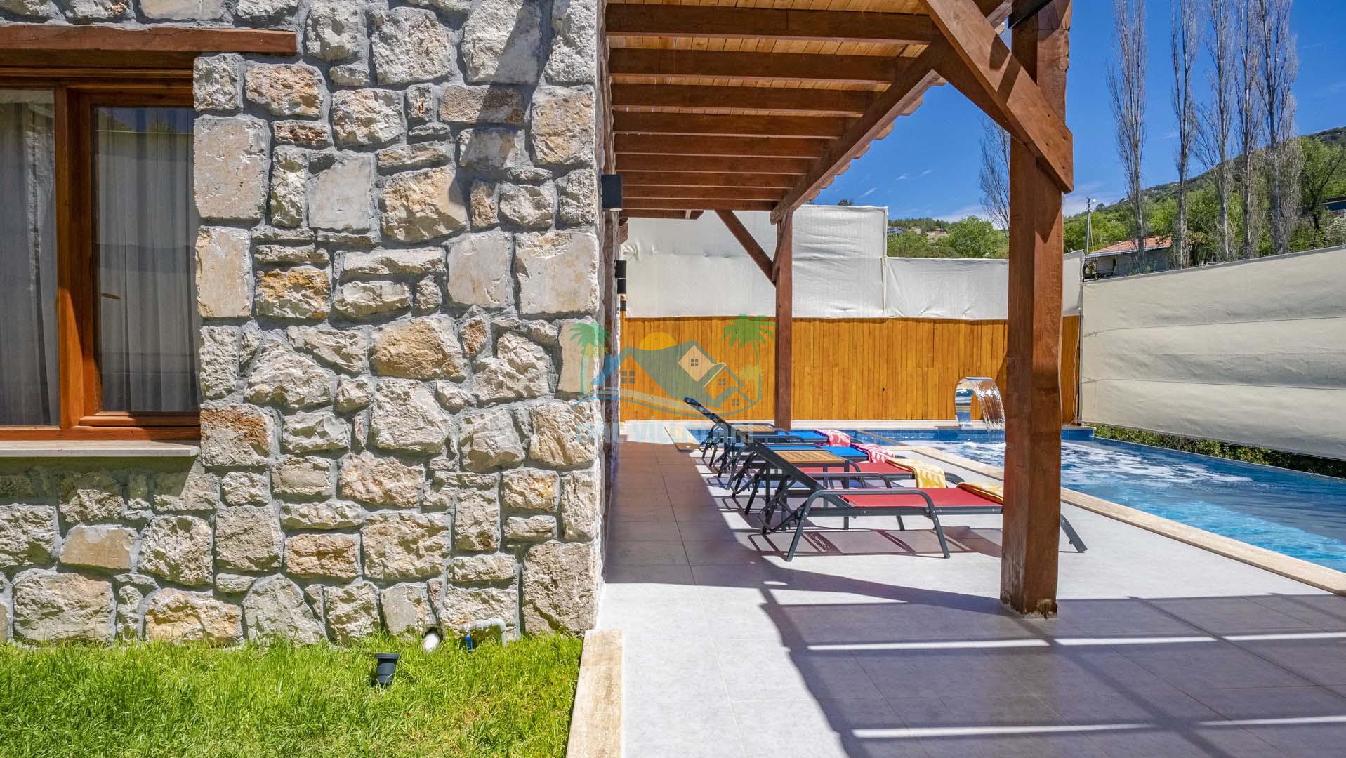 Antalya Kaş Kalkan'ın Sarıbelen mevkiinde konumlanmış, çekirdek ailelere ve balayı çiftlerine hitap eden, özel havuz ve jakuzi keyfi sunan, geniş bahçe alanına sahip, çocuklu aileler için çocuk oyun alanı ve çocuk havuzu olan, doğa manzarasına hakim kiralık tatil villasıdır.