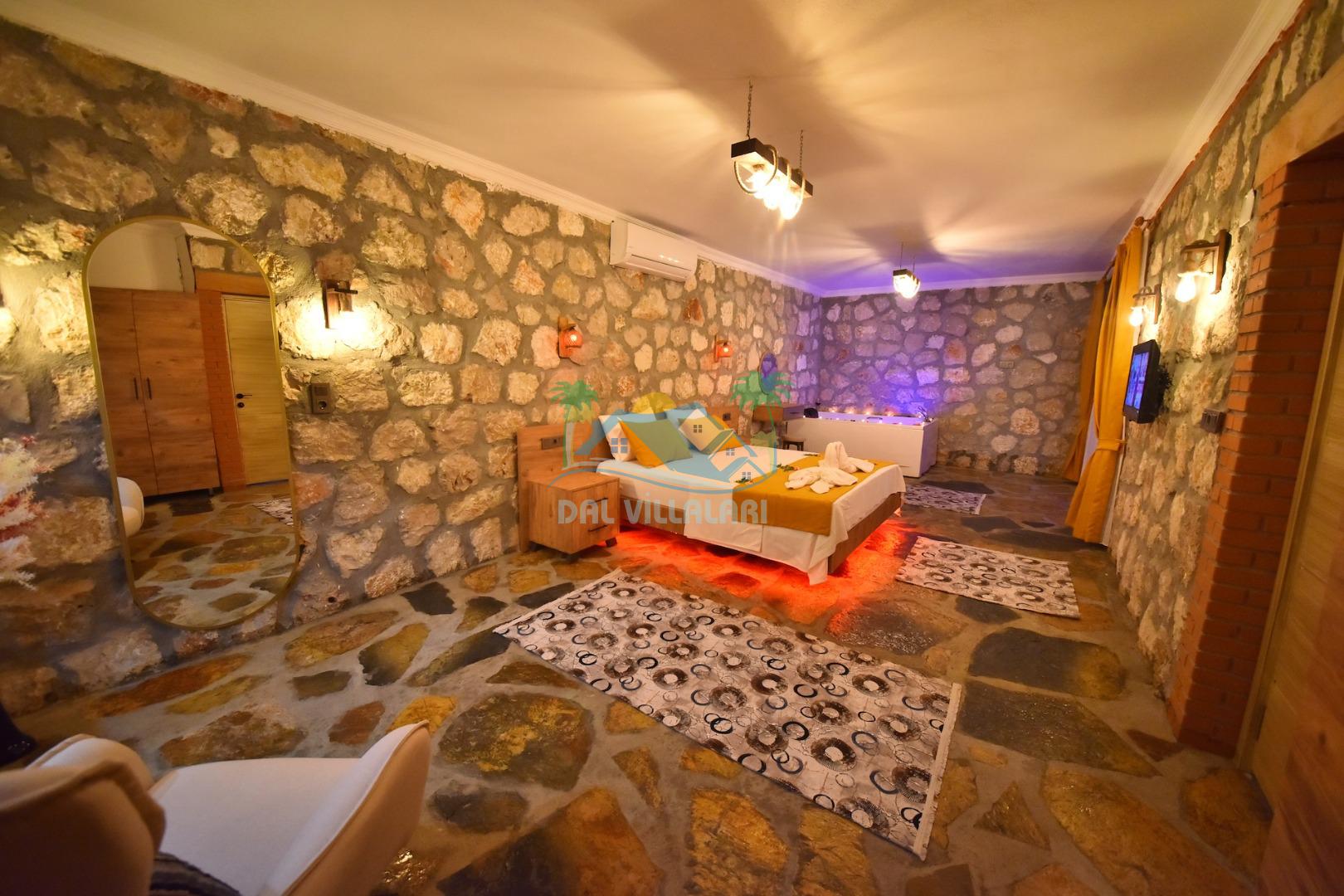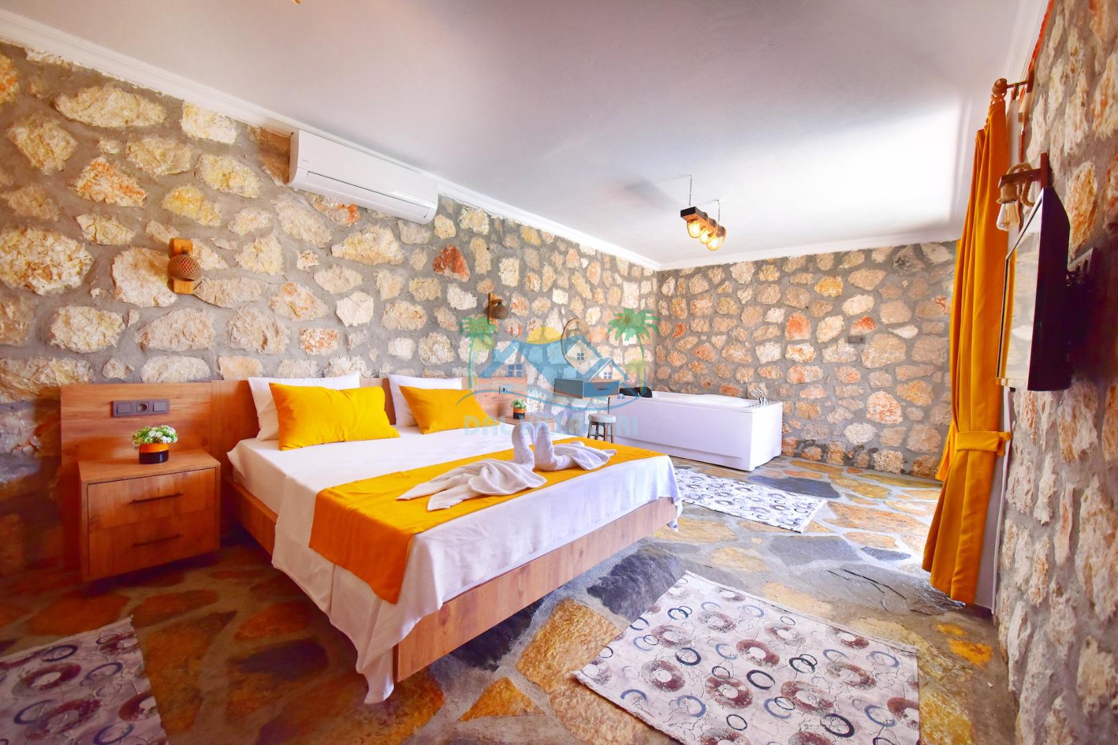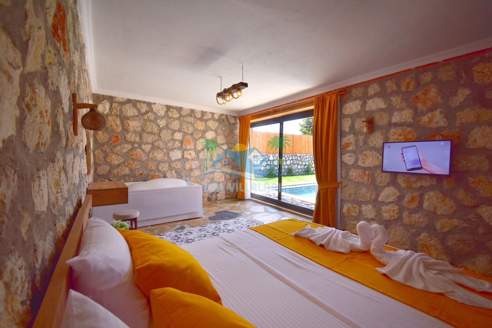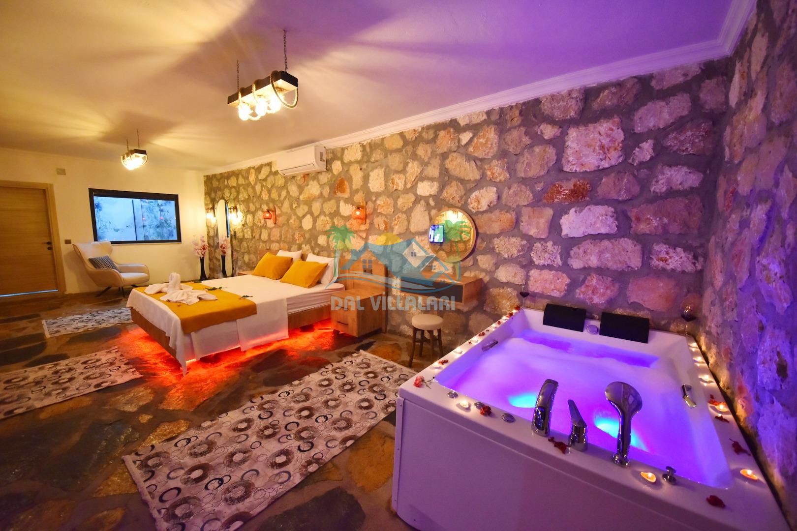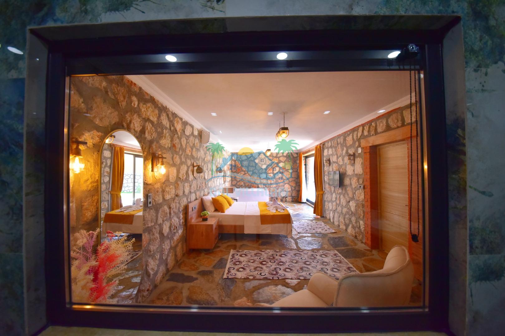 Villa Sefir Kaş Kınık mevkiinde konumlandırılmış 2 yatak odalı 4 kişilik konaklama imkanına sahiptir. Muhafazakar havuzlu, jakuzili, çocuk oyun parkı bulunan kiralık tatil villasıdır.