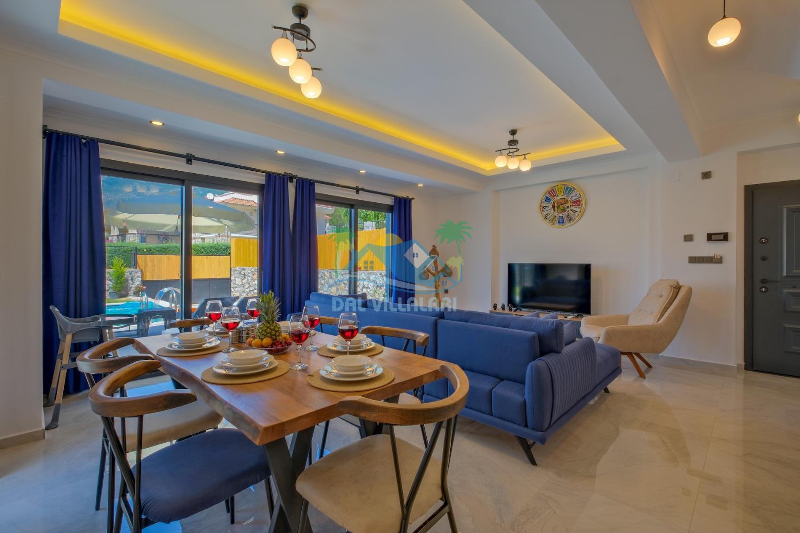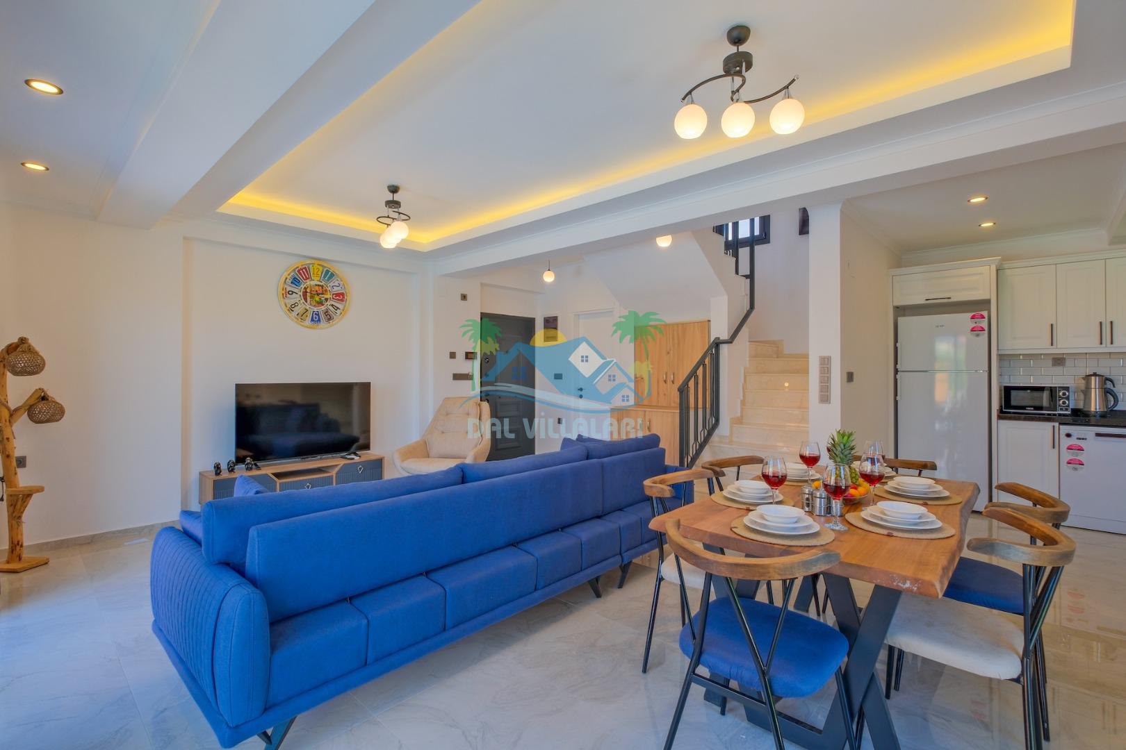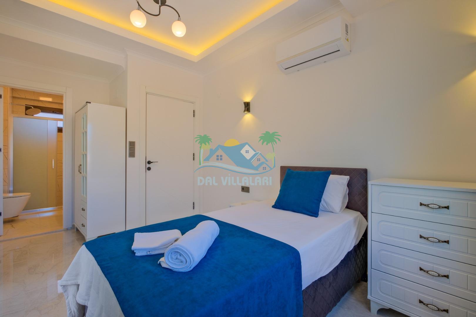 -Villamız 3 yataklı olup 5 kişilik konaklama imkanına sahiptir.