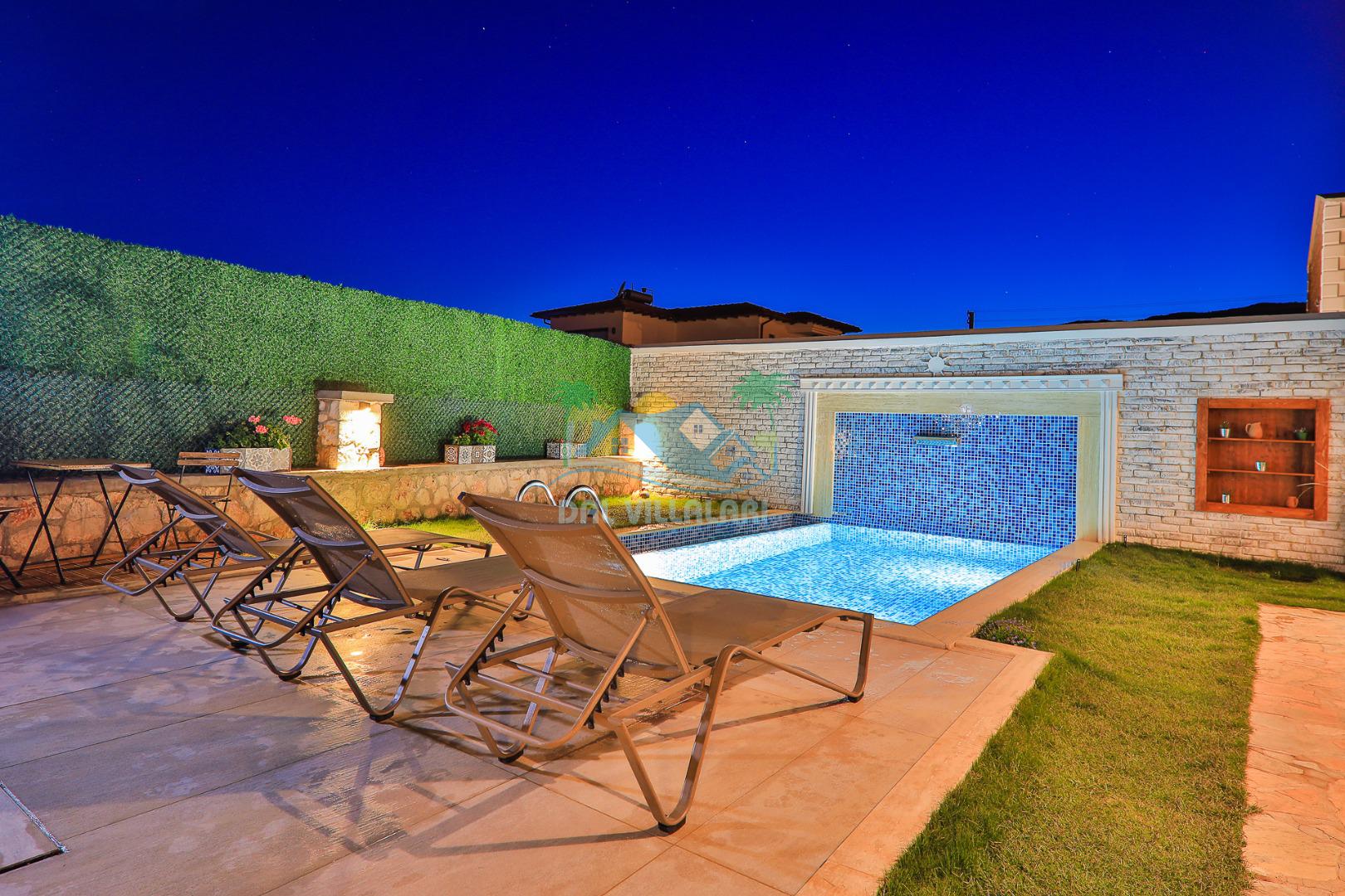 Kaş Çukurbağ bölgesinde bulunan villamız 2 yatak odalı 4 kişilik özel yüzme havuzlu kiralık yeni villamızdır. Villamızın havuzu korunaklı olup dışarıdan gözükmemekte olup balayı çiftlerimiz ve muhafazakar aileler içinde uygun bir villa seçeneğimizdir. Kaş merkeze 10 dk. mesafede olup kolay bir şekilde Kaş'taki plajlarımıza ve merkeze ulaşım sağlayabilirsiniz. Villamız doğa içerisin de olup sessiz ve sakın bir konumda bulunmaktadır.