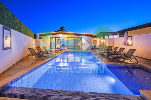 Villamızın havuz terası dışarıdan görünmez yapıdadır ve mahremiyet arayan misafirlerimiz için özenle tasarlanmıştır. Üstelik, manzaralı bir alanda yer alan 2 kişilik jakuzisi ile unutulmaz bir konaklama deneyimi sunar.
