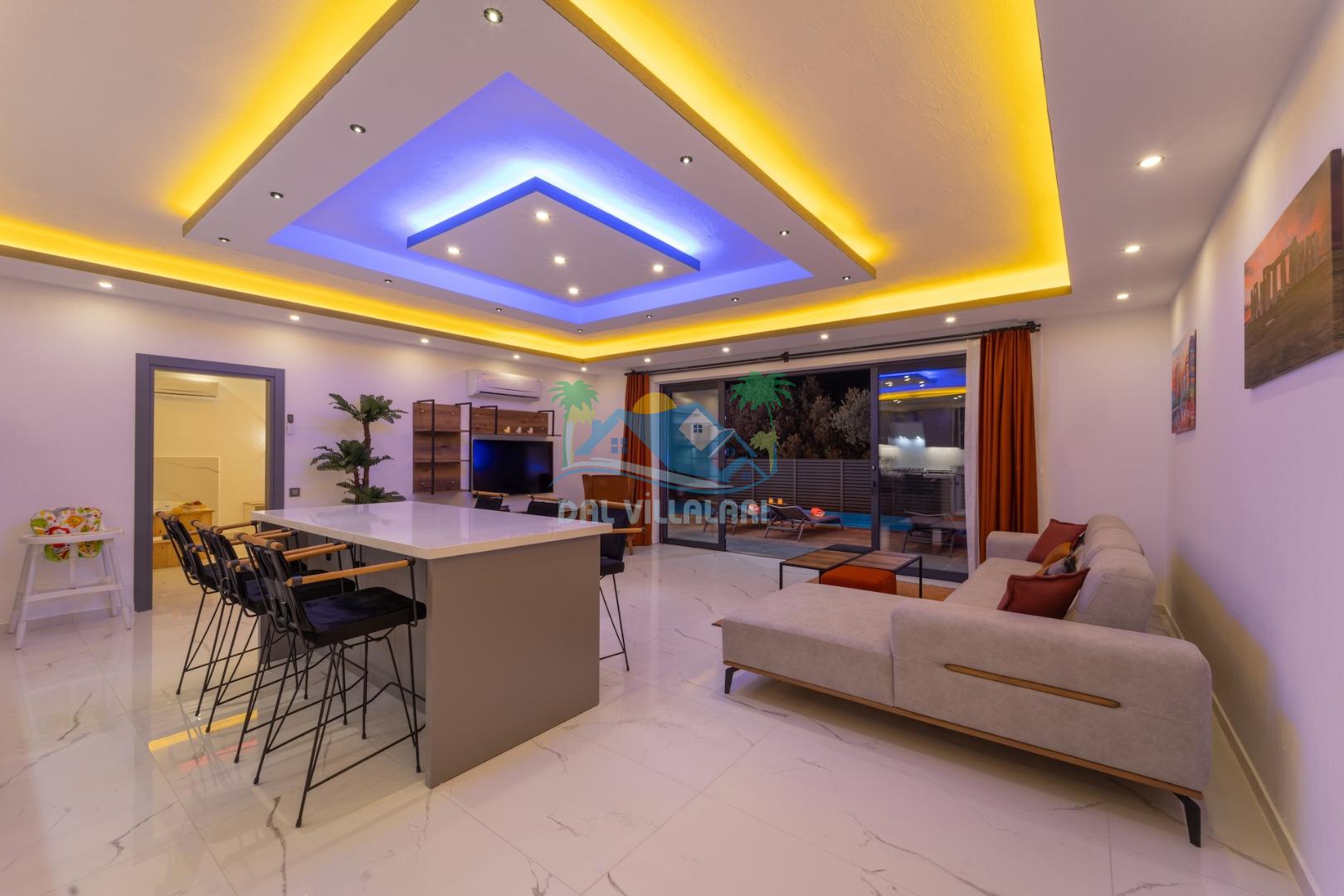 Kalkan Çayköy bölgesinde yer alan Villa Sinem, 5 kişi kapasiteli 2 yatak odalıdır. Doğa içerisinde, yemyeşil ağaçların arasında konumlanan, geniş havuz alanı ve bahçeleriyle sizlere konforlu bir tatil imkanı sunmaktadır. Villa Sinem, korunaklı havuz alanı ile muhafazakar odalar, çocuklu odalar için ideal bir seçenektir. Villada bulunan her şey mevcut olduğu için Sinem, müşterilerinin kullanım kolaylığı düşünülerek tasarlandı. Muhafazakar yapısı ile hatları ve balayı çiftlerine özeldir. Geniş bahçe alanı, terası, erişim alanı ve çocuk parkı bulunmaktadır. Doğa ile iç içe olan villamızda kuş sesleri eşliğinde kahvenizi yudumlayabilir yatak odasında bulunan jakuziyle yılın yorgunluğunu atabilirsiniz.