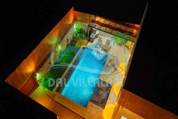 Villanın kendine ait özel yüzme havuzu, dışarıdan görünmeyecek şekilde konumlandırılmış olup gün boyu kesintisiz bir mahremiyet sağlamaktadır. Geniş ve ferah bahçesinde yer alan barbekü alanı, akşam yemeklerinizi açık havada keyifle hazırlamanız için düşünülmüştür.