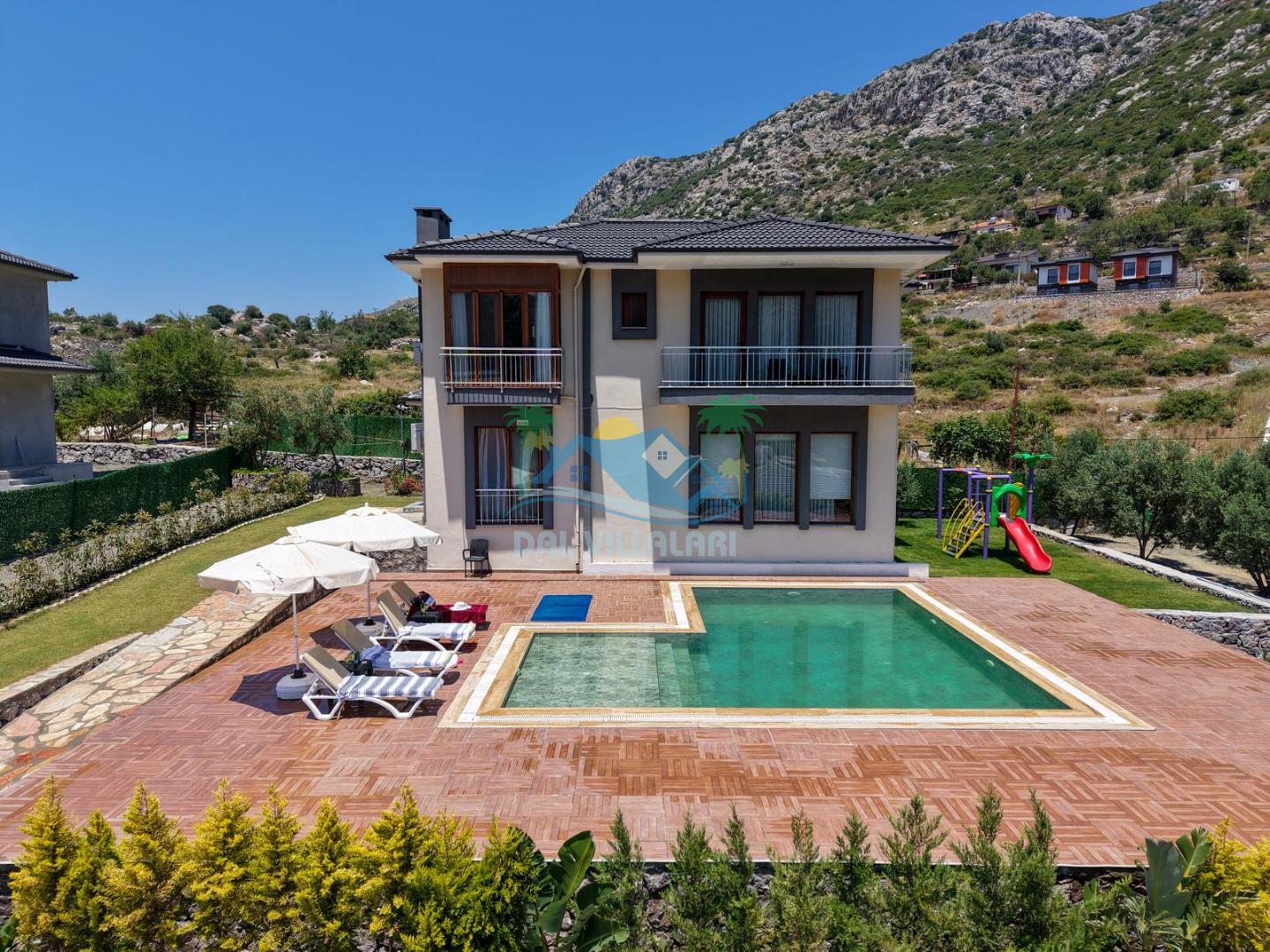 Marmaris Söğüt’te 10 Kişilik Kiralık Villa | Özel Havuzlu, Çocuk Oyun Alanlı Aile Villası