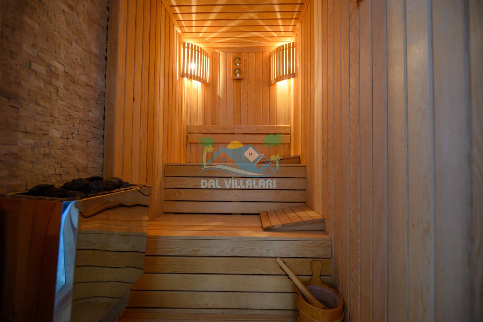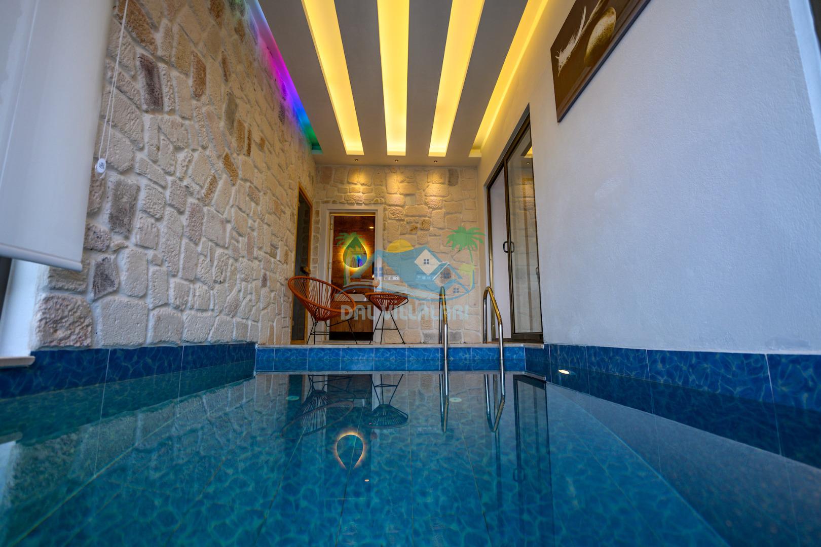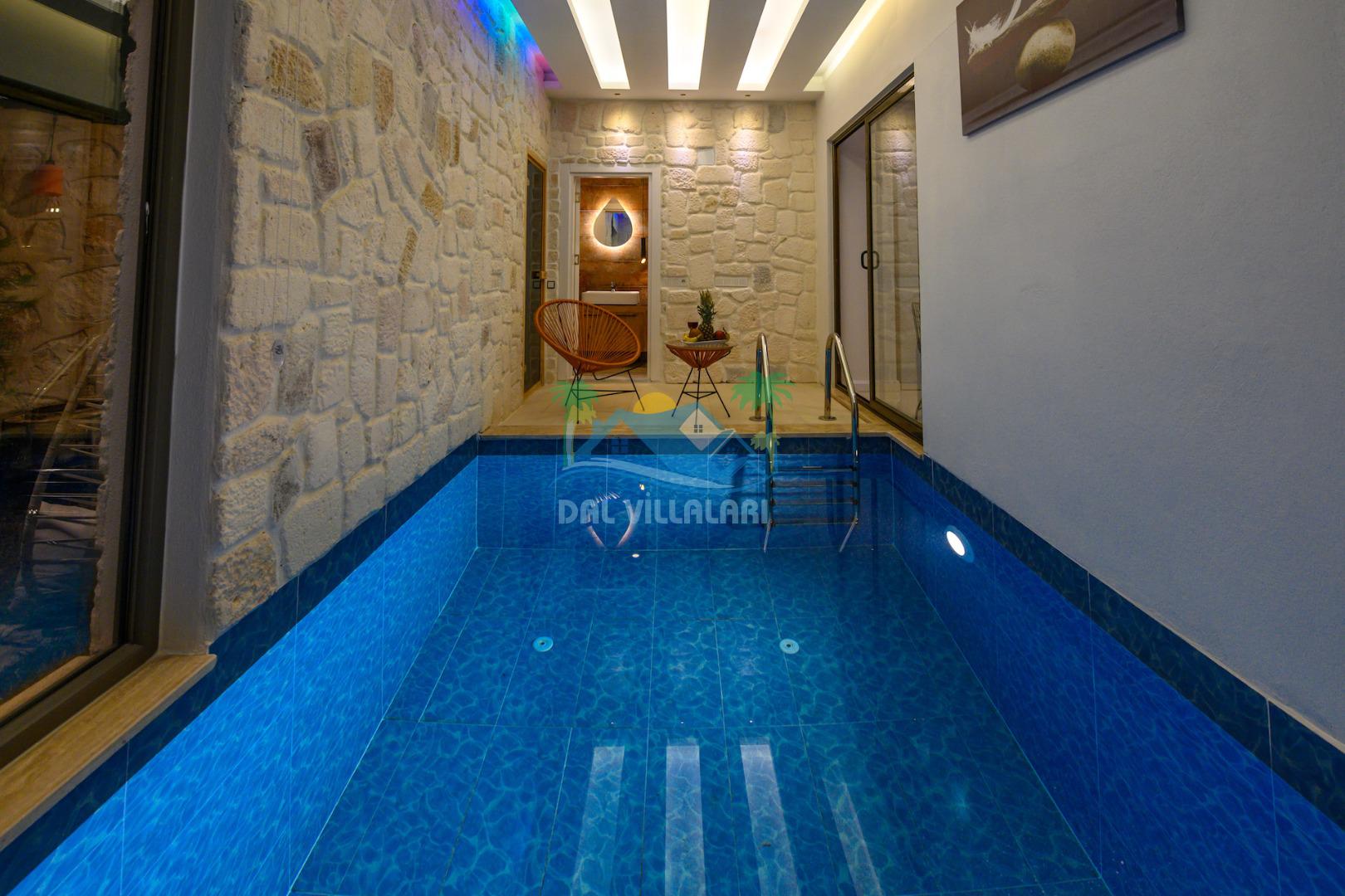Kapalı havuzu ve Saunası bulunanan villa deniz manzaralıdır.