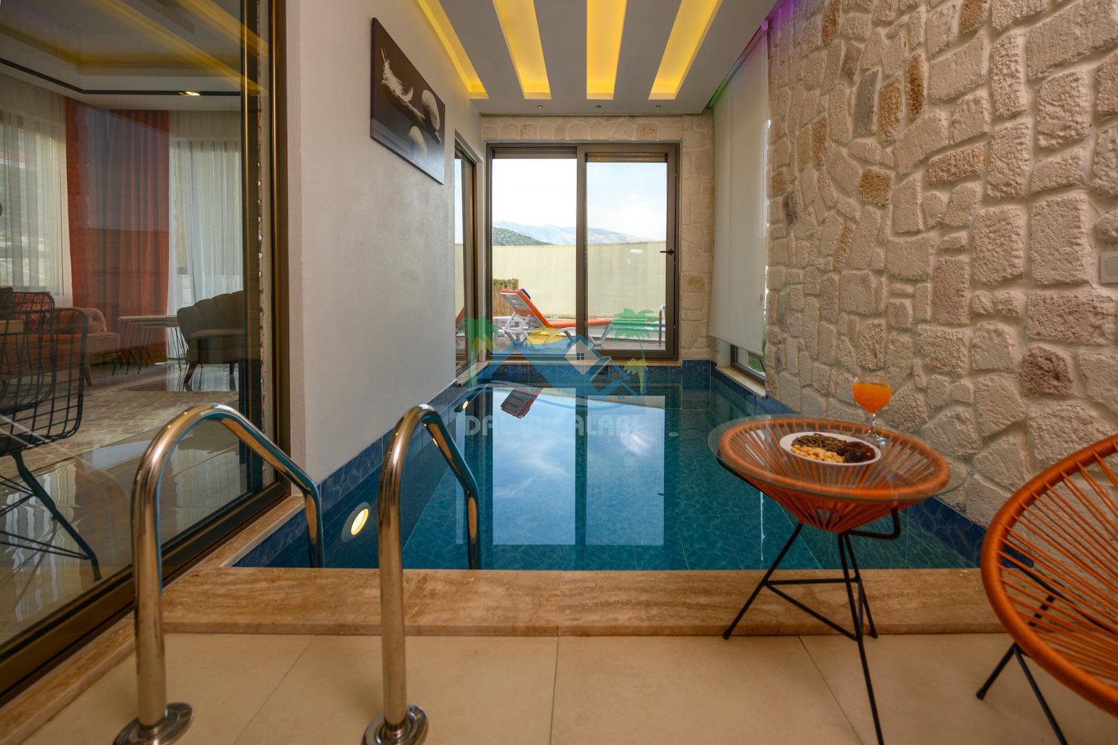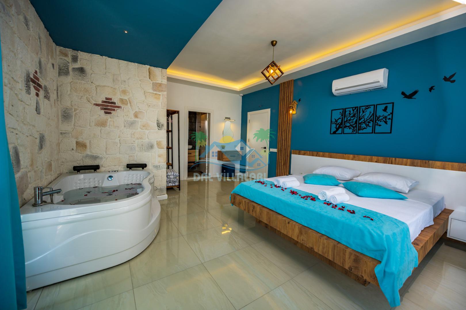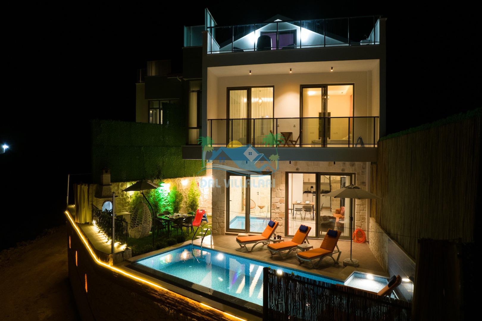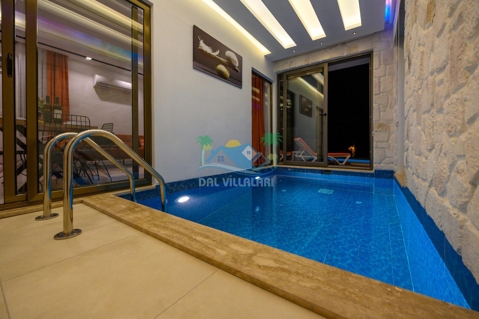 Kapalı havuzu ve Saunası bulunanan villa deniz manzaralıdır.