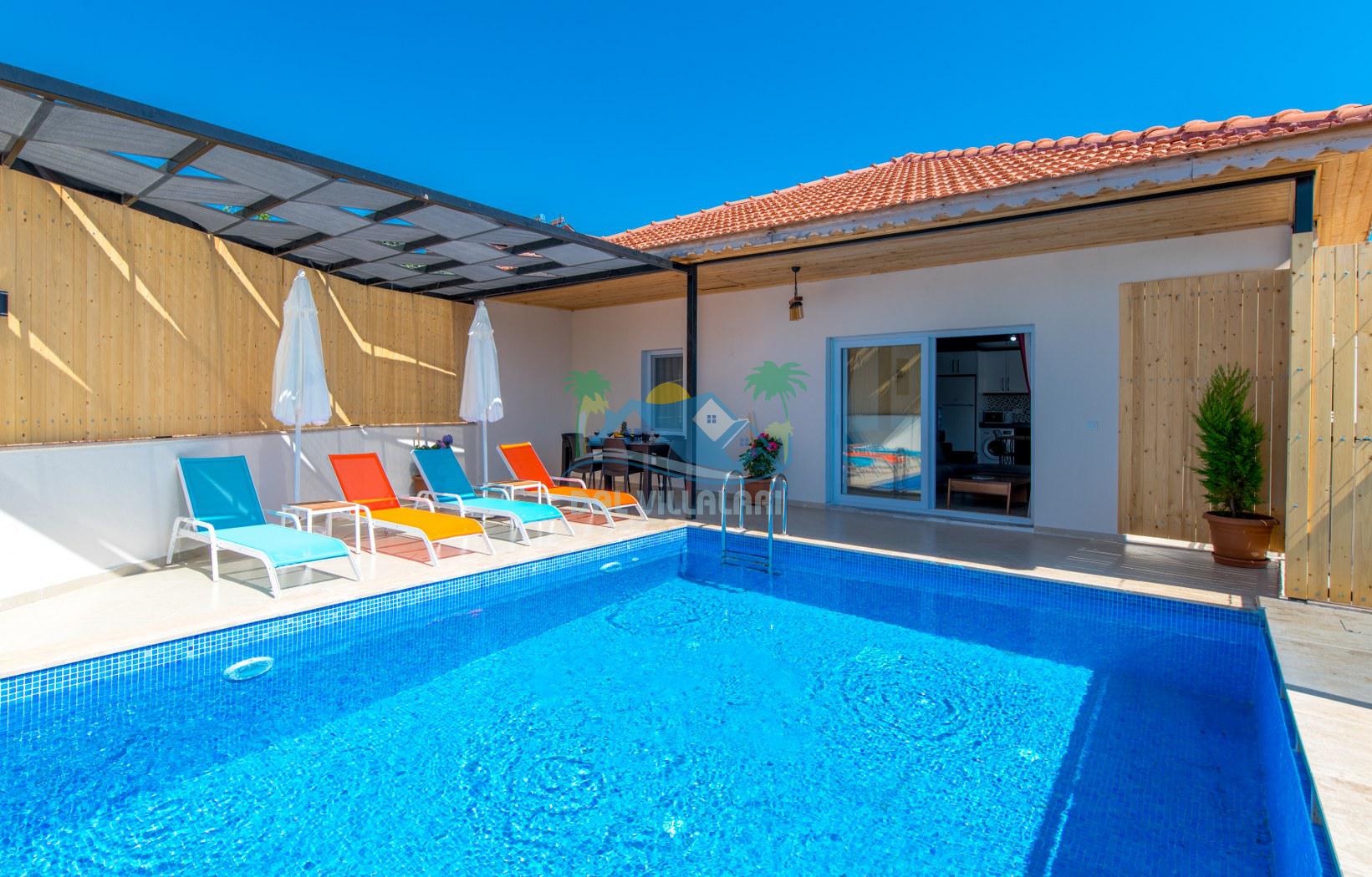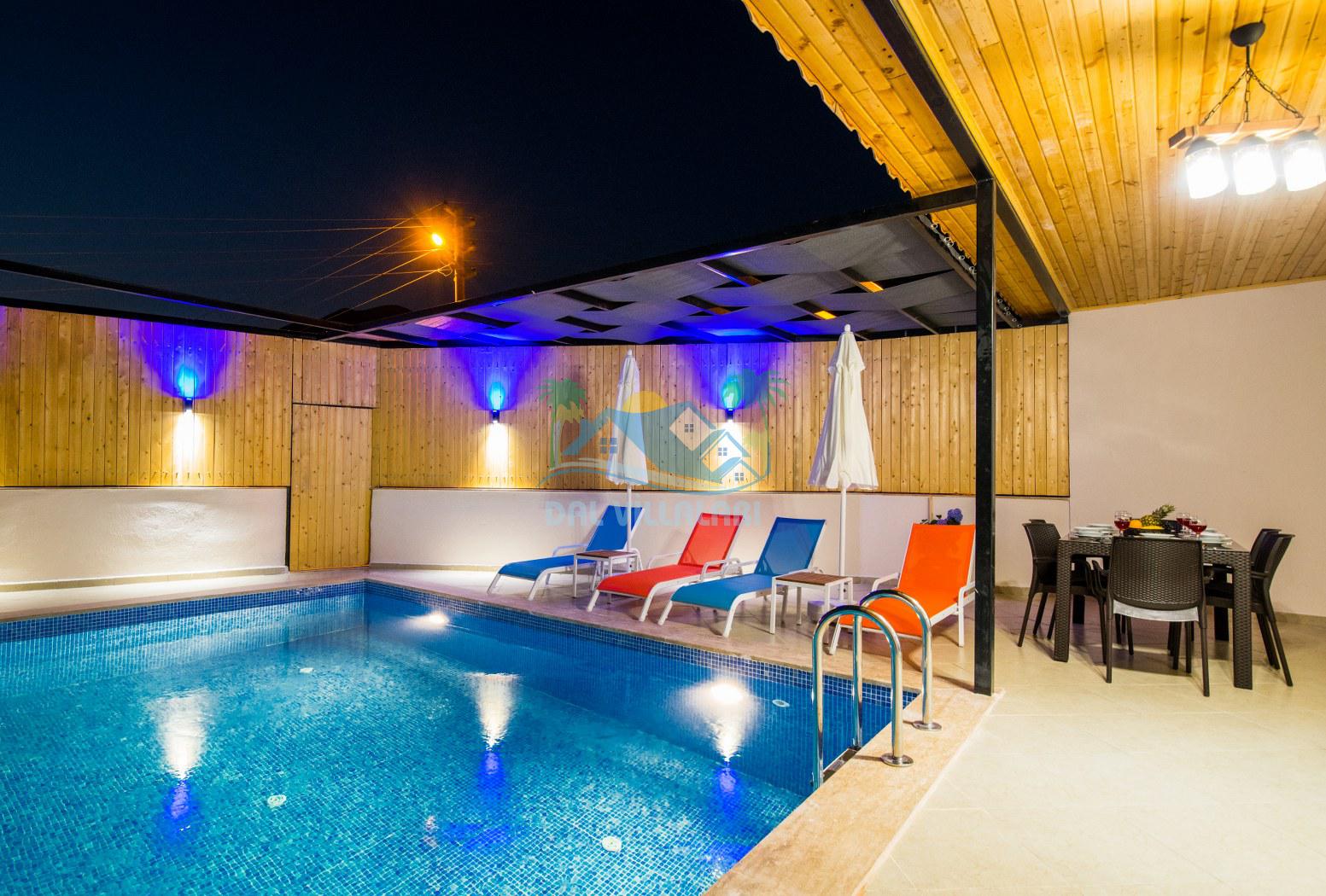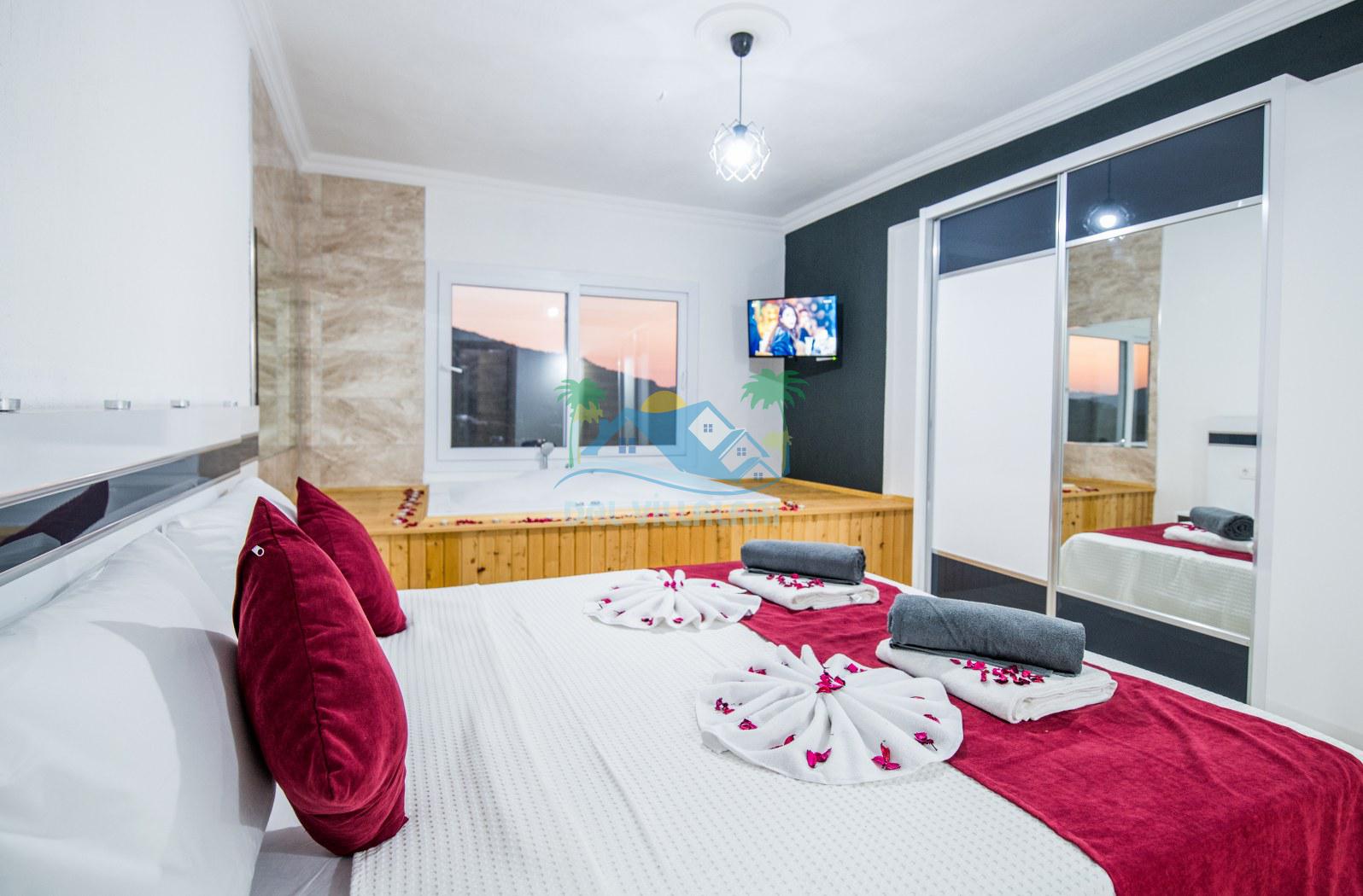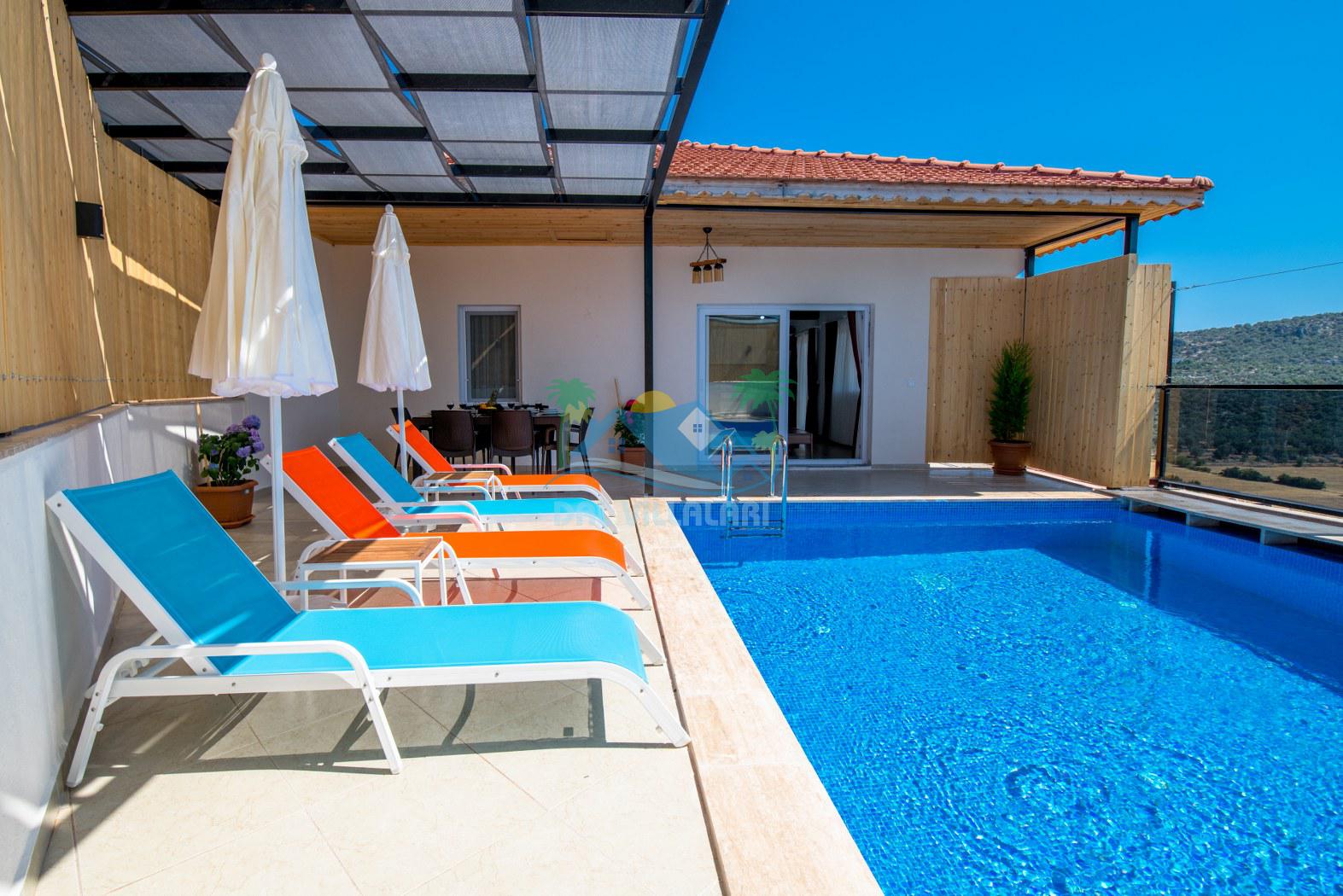 Kalkan Ulugöl bölgesinde bulunmaktadır. Yer aldığı konum itibari ile merkeze yakın villa seçenekleri arasındadır. 2 yatak odalı olup toplamda 4 kişi konaklama kapasitesine sahiptir. Çekirdek aileler veya yeni evli balayı çiftlerinin tercih edebileceği bir villa seçeneğidir. Havuz alanı korunaklı olup muhafazakar ailelere uygundur. Jakuzili bir villadır. Bu sebeple tatilinizde yeni bir deneyim kazanabilirsiniz.
