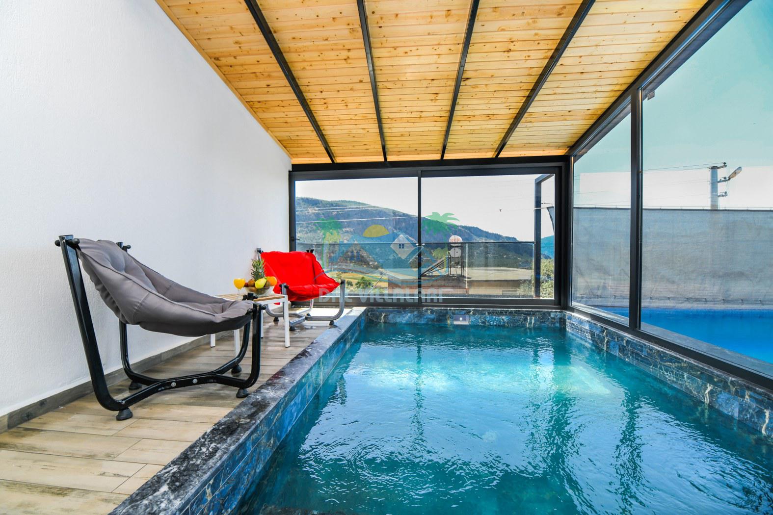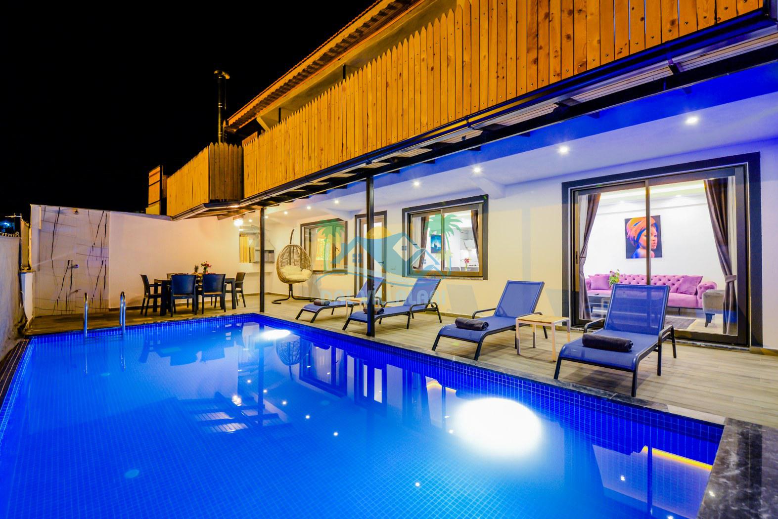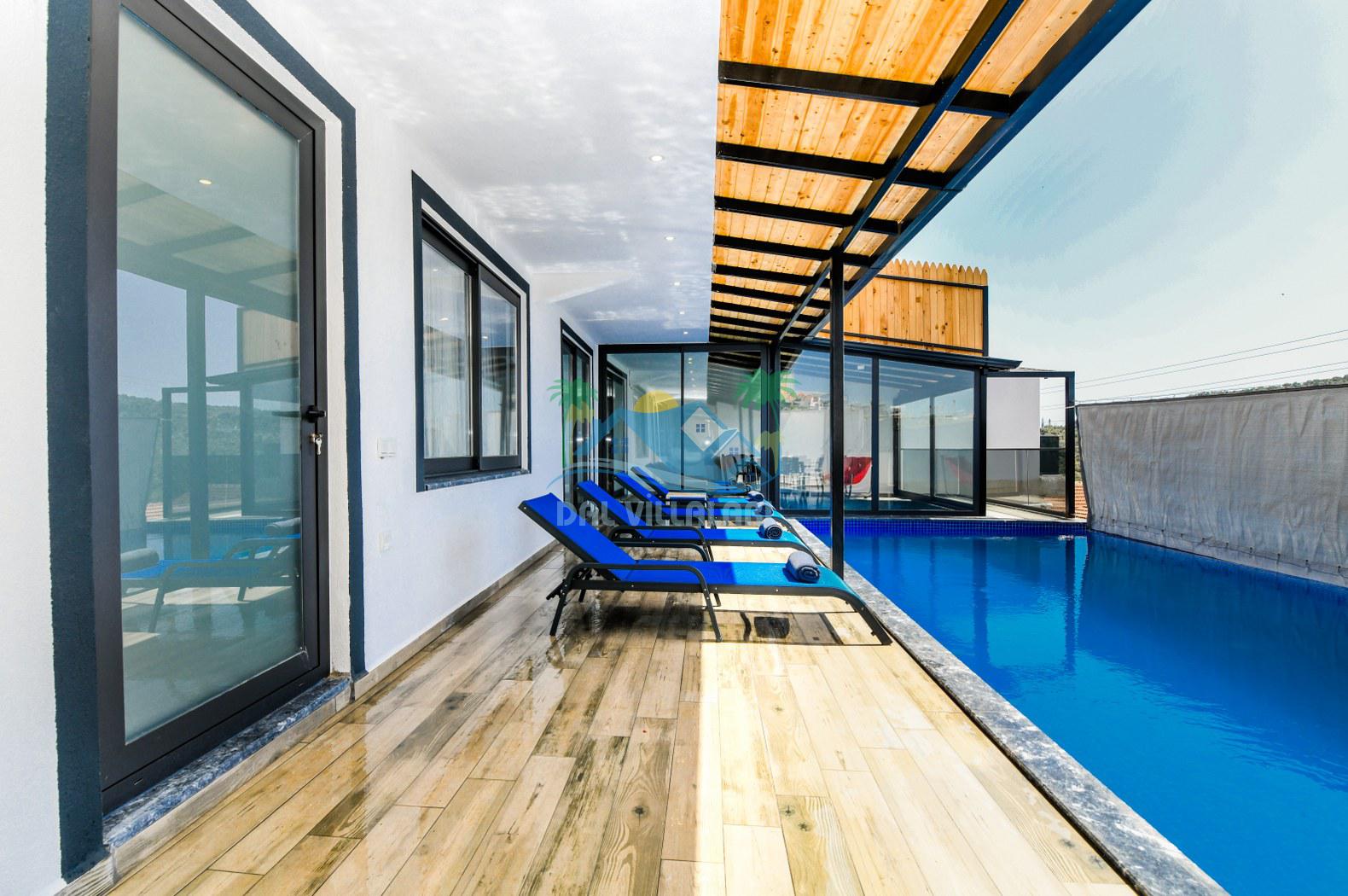 Antalya'nın eşsiz tatil beldelerinden birisi olan Kalkan'ın Ulugöl mevkiinde bulunan 4 kişi kapasiteli villalarımızdan bir tanesidir. Villa Summer 3, çekirdek aileniz ile keyifli bir tatil geçireceğiniz aynı zamanda kapalı ısıtmalı havuzlu tatil villamızdır. Sizlere konforlu bir tatil sunmaktadır. Villamızın havuz etrafı korunaklı olup dışarıdan görünmediği için muhafazakar ailelerimiz gönül rahatlığıyla tatilini yapabilirler. Havuz önündeki perde sistemi açılıp kapanır durumdadır.