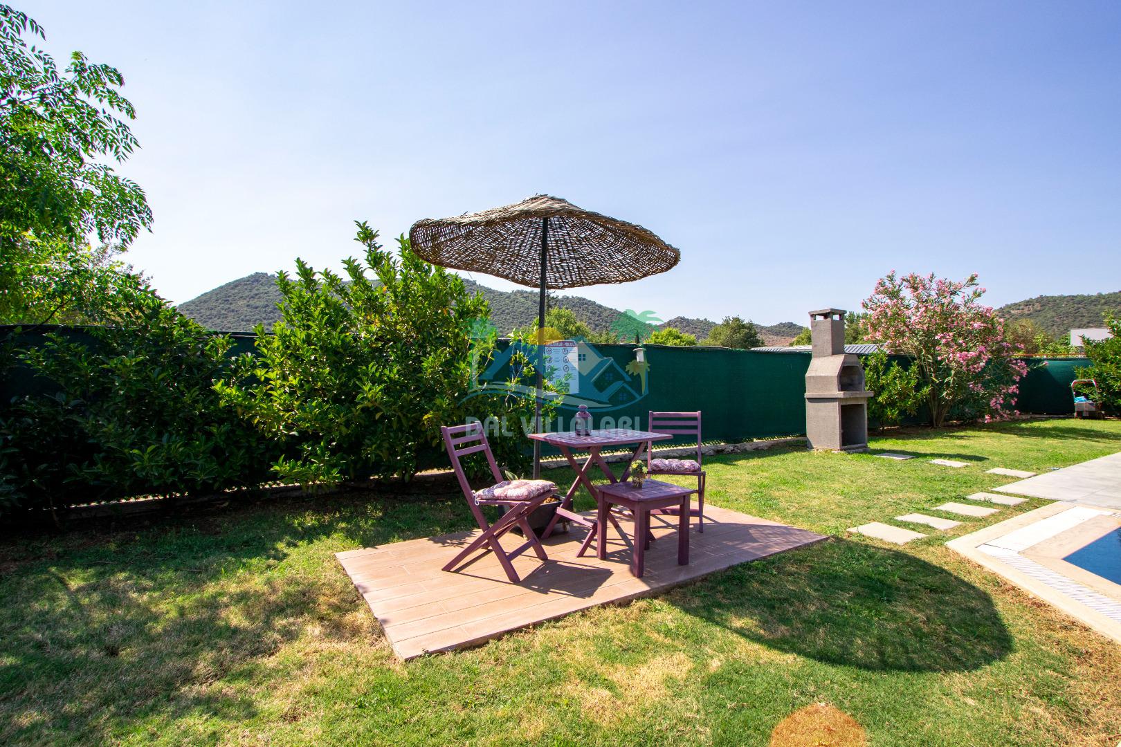 Villanın bakımlı bahçesinde özel havuz gün boyu size eşlik eder. Güneşlenme alanında şezlonglarda dinlenebilir, bahçedeki oturma alanında kahvenizi yudumlayabilirsiniz. Dış alanda bulunan barbekü alanı ile akşam yemeklerinizi keyifli bir rutine dönüştürmeniz de mümkün.