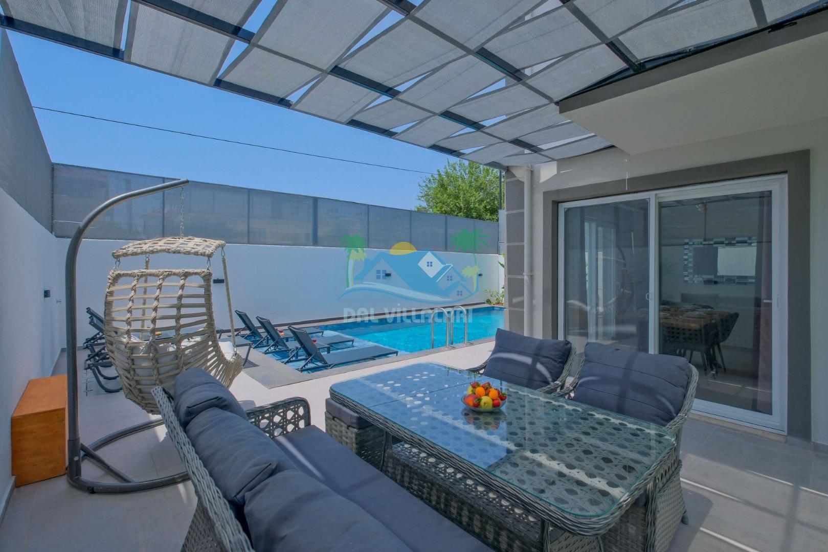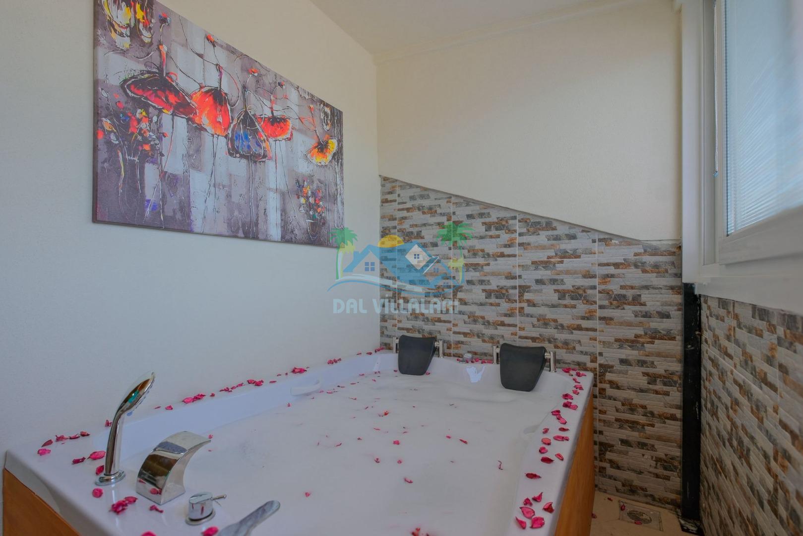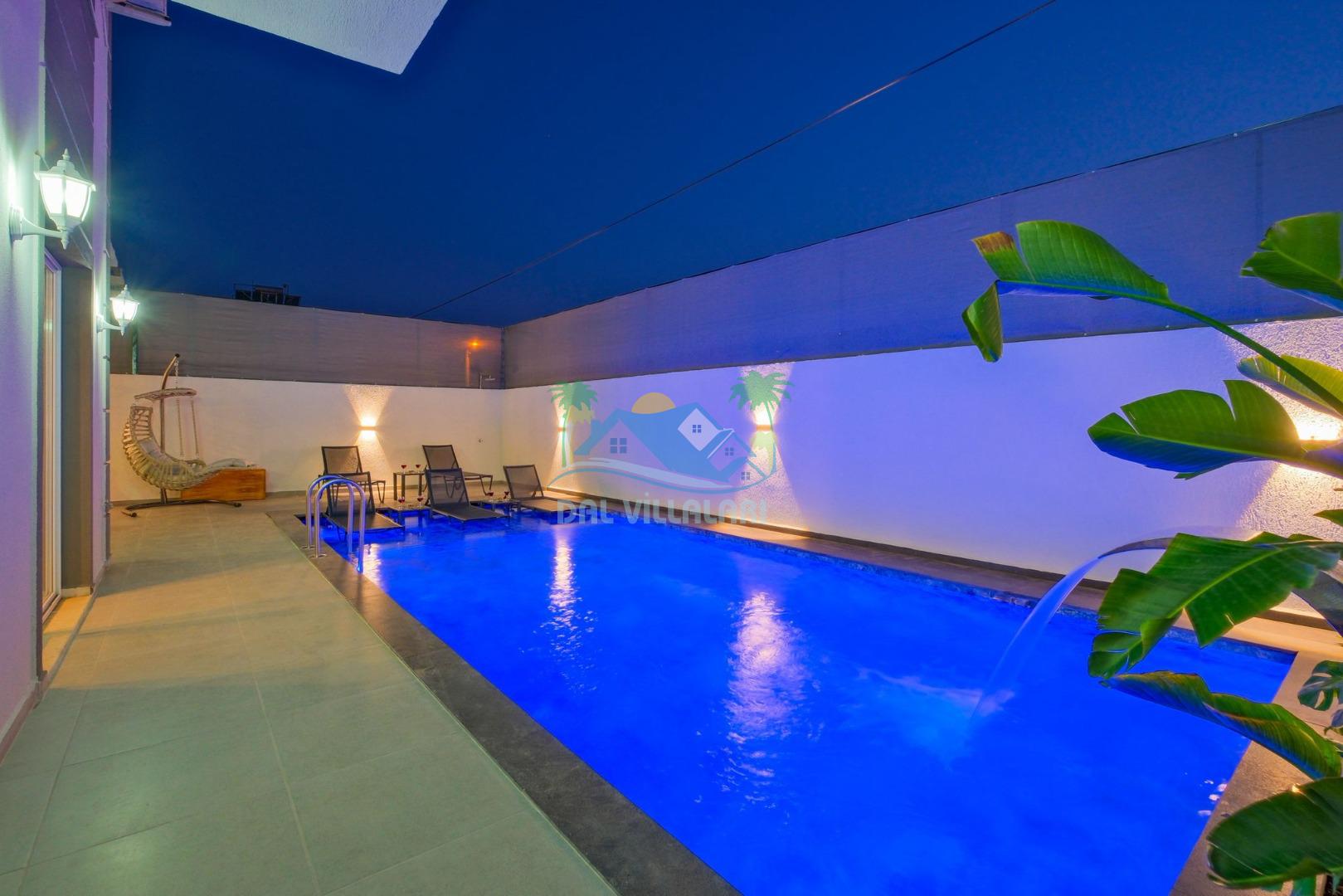 Villamız 8 kişilik konaklama kapasitesi ile aileler ve arkadaş grupları için uygundur. Toplam 4 yatak odası bulunan villada; 2 odada çift kişilik yatak, 2 odada ise iki tek kişilik yatak yer alır. Tatilinizi daha keyifli hale getiren detaylardan biri de çatı katında yer alan jakuzi ayrıcalığıdır.