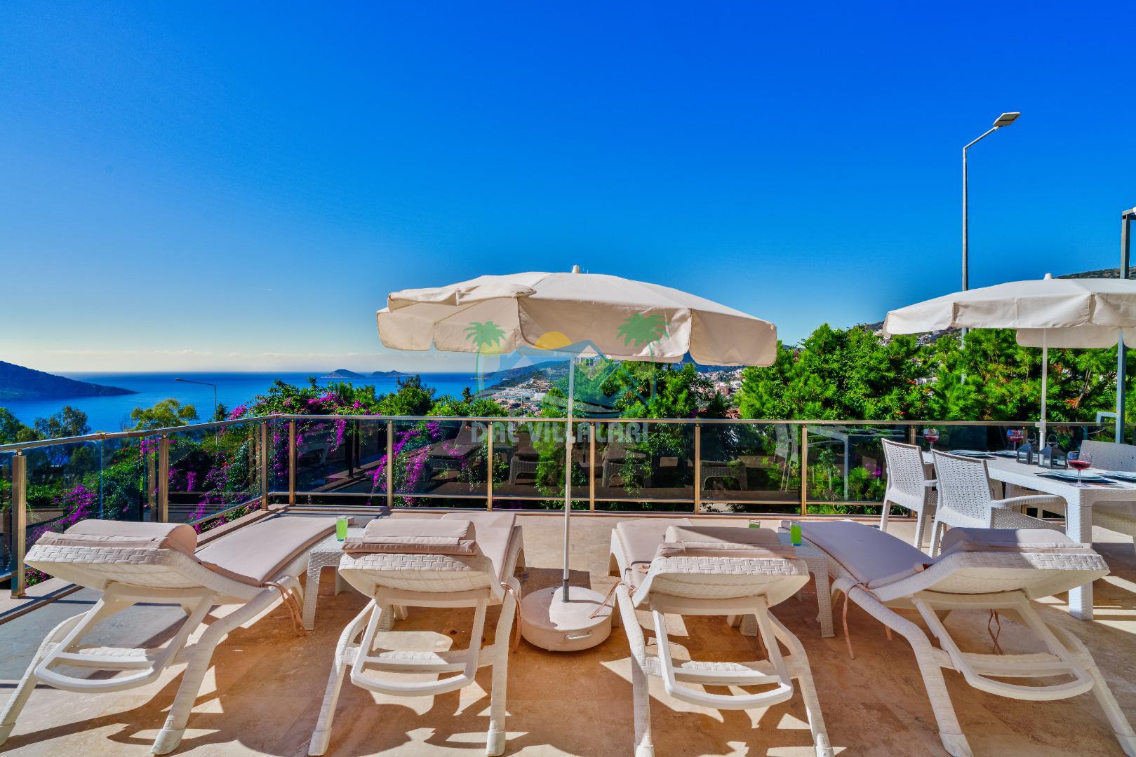 - Dış Alan: Güneşlenme alanı, şezlonglar, oturma/yemek alanı