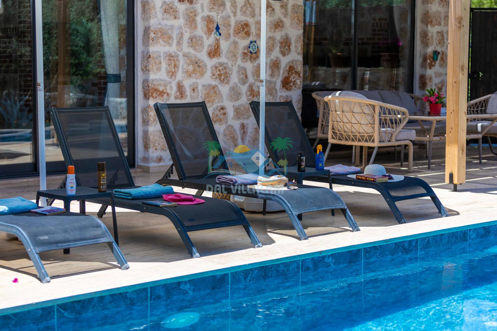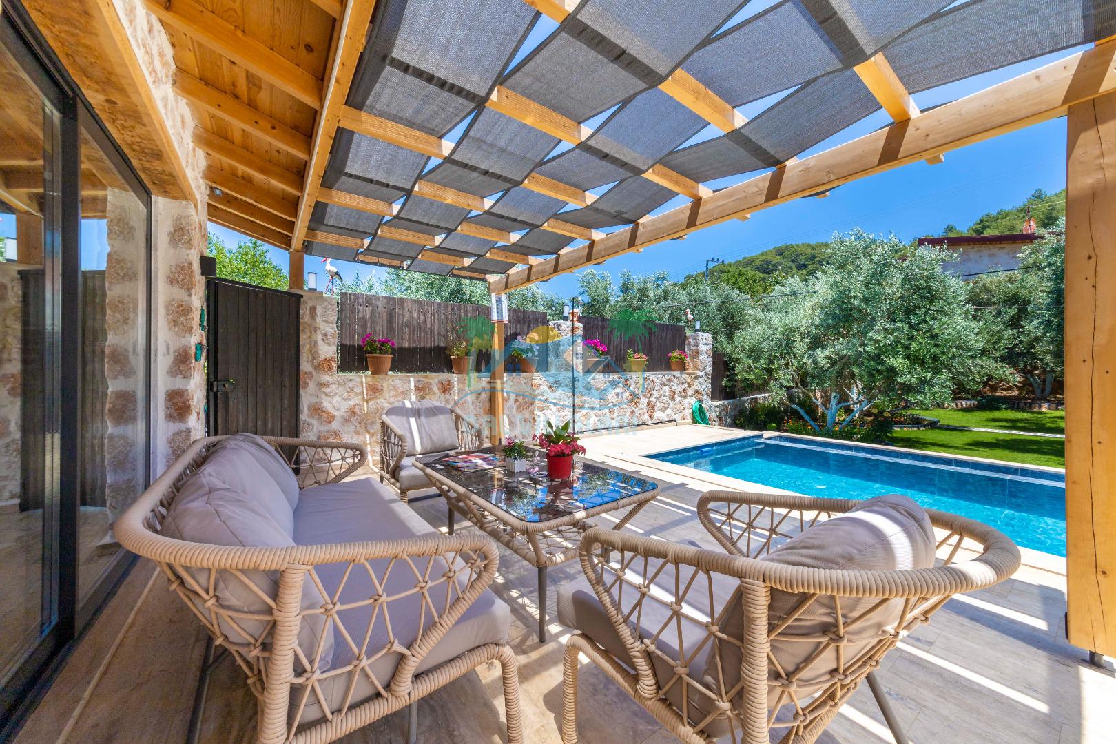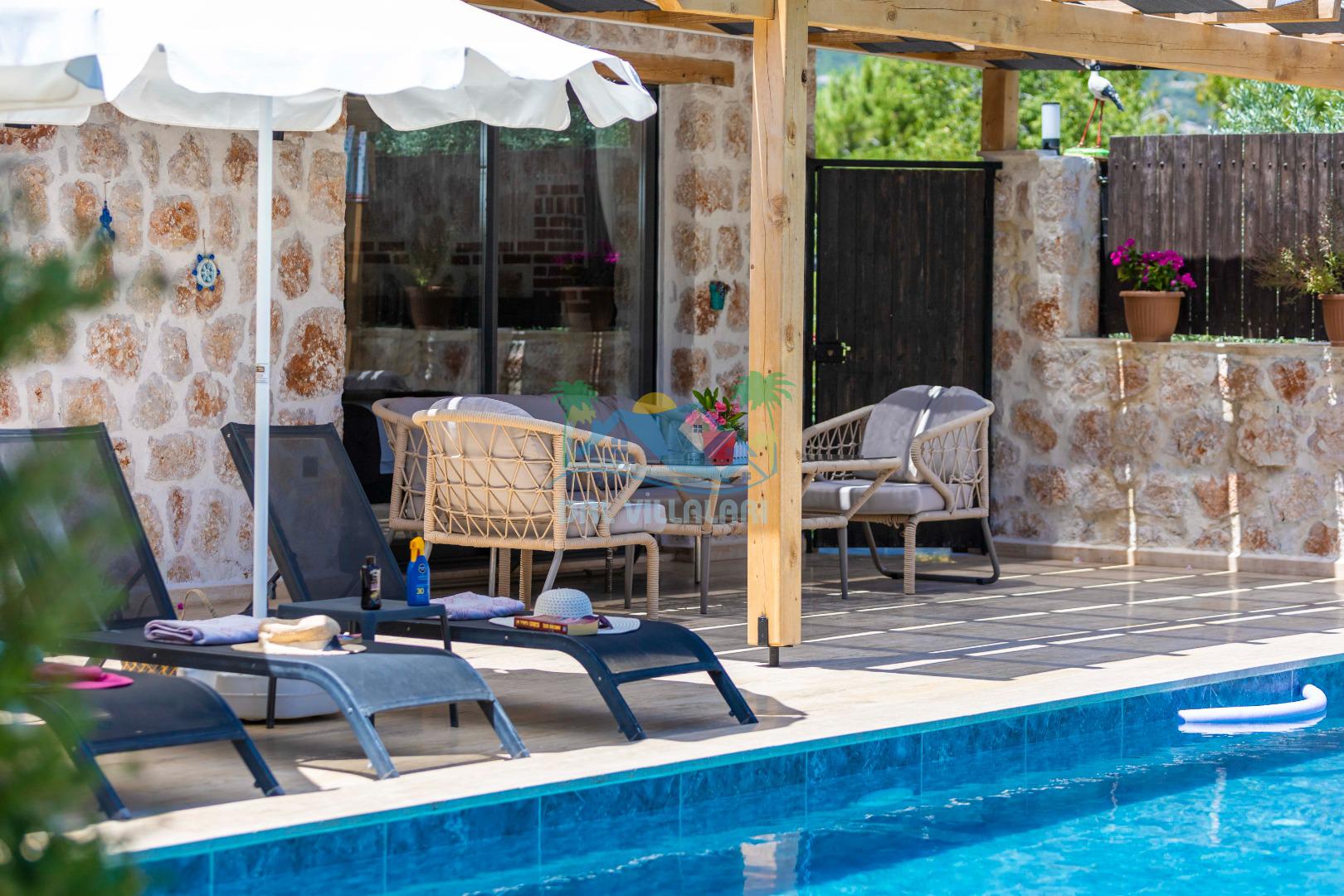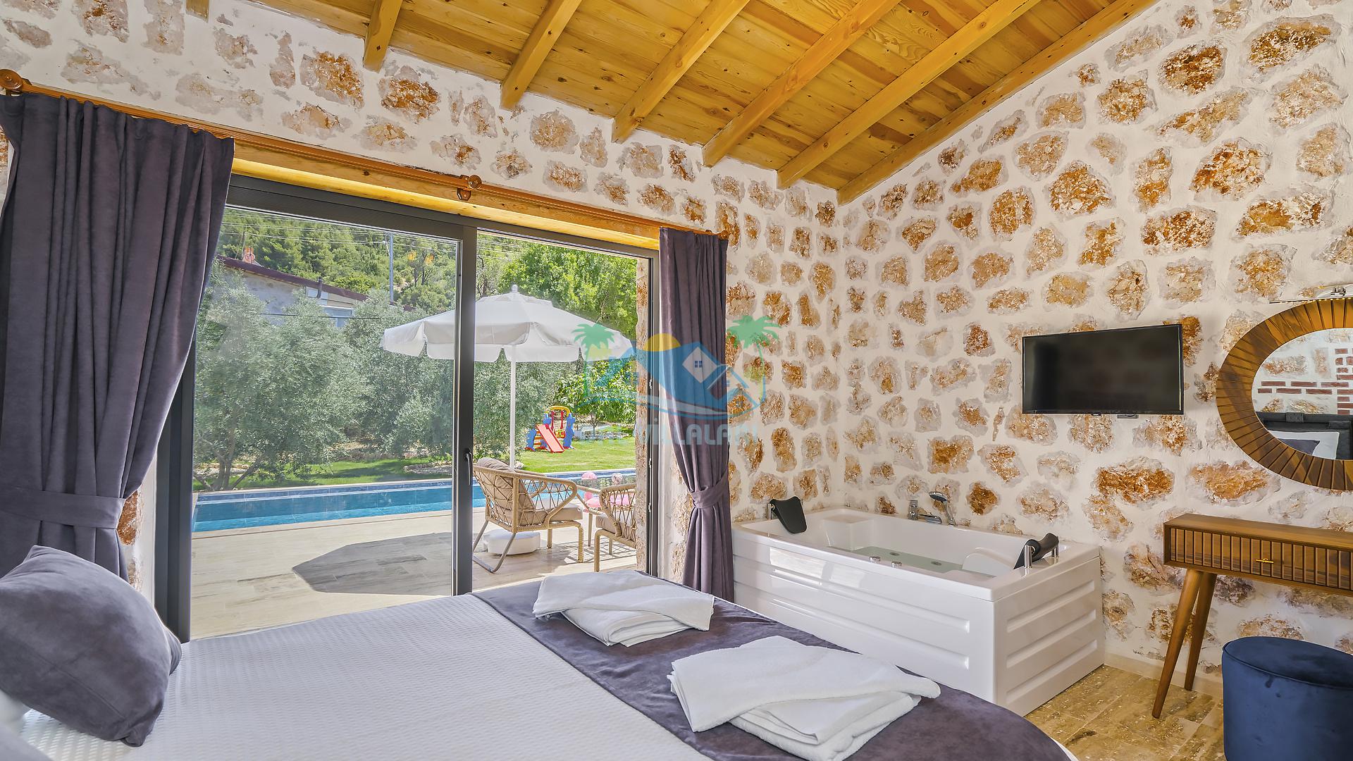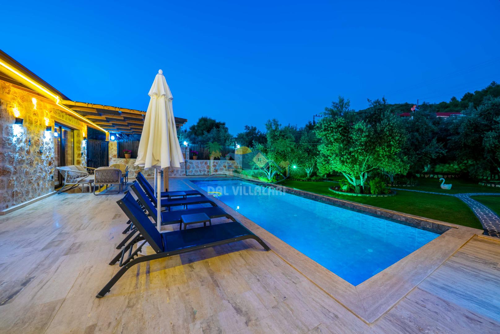 Kalkan Sarıbelen mevkiinde konumlanmış, 2 yatak odalı, 5 kişilik konaklama imkanına sahip özel havuzlu Villa Tunç Garden doğa manzarası, farklı tasarımıyla ve çift kişilik jakuzisi ile insanlara ekstra rahatlık imkanı sunuyor. Siz değerli kişilere özel bir tatil deneyimi yaşatmaya hazır olan villamız, Villa tunç Garden kiralık balayı villalarımız, konforlu ve konforlu bir tatil isteyen konuklarımız için en ideal seçeneklerden bir tanesidir. Villamız muhafazakar villalar ve balayı villaları kapsamında yer almaktadır.