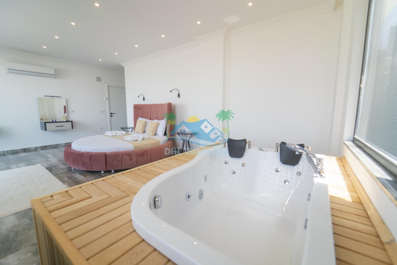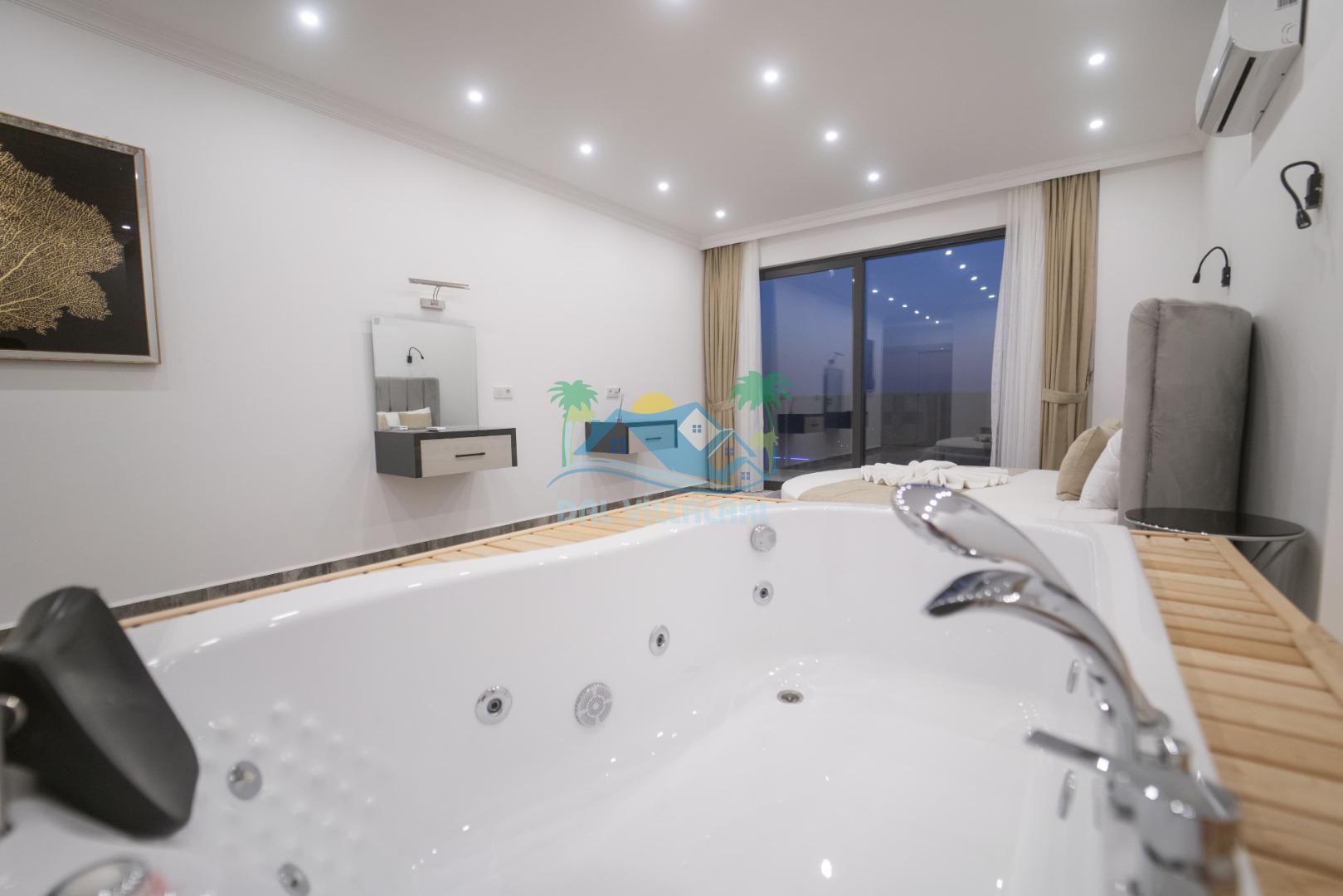 Korunaklı yapısı, jakuzili odaları, çocuk dostu alanları ve konforlu yapısı ile villamız, Kalkan bölgesinde villa kiralamak isteyen aileler için ideal seçeneklerden biridir.