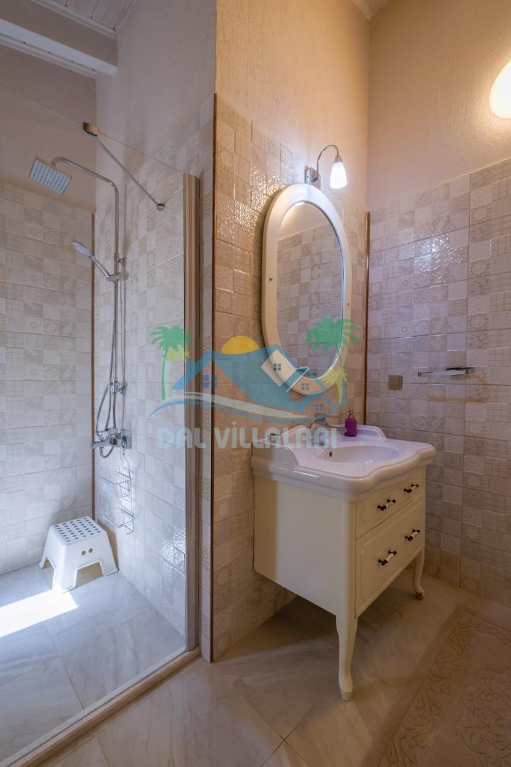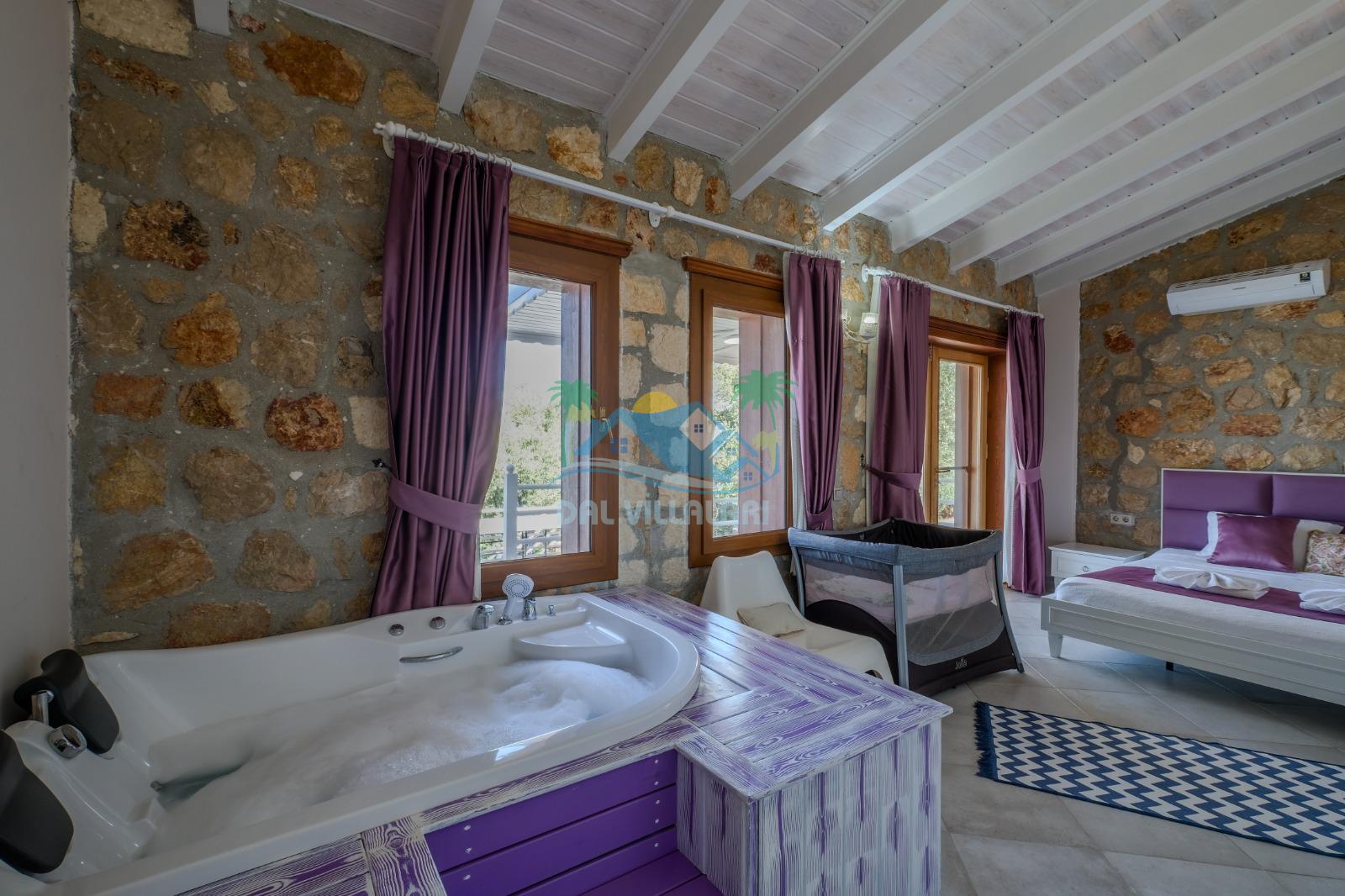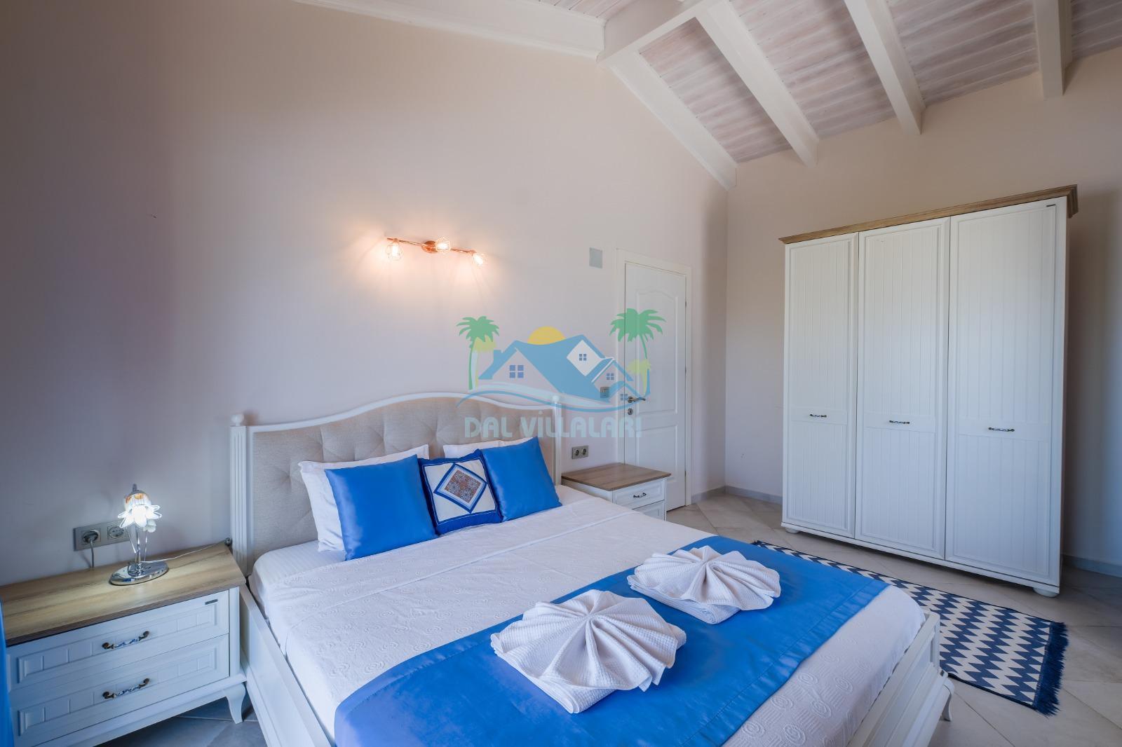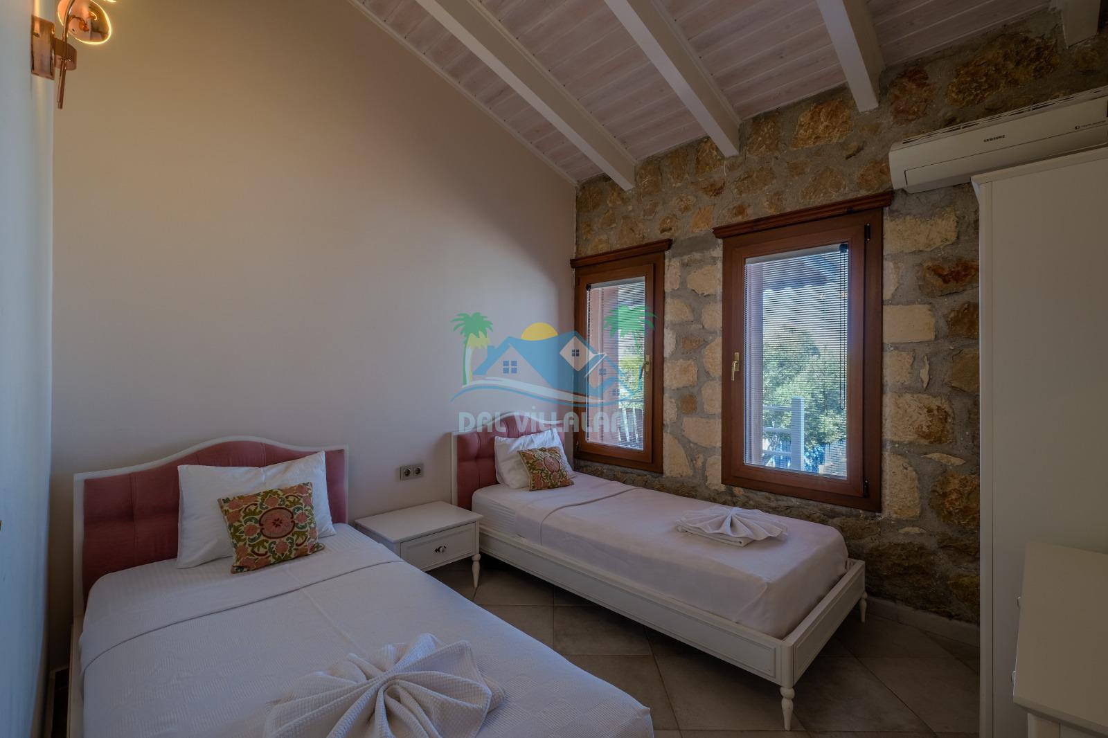 Toplamda 3 yatak odasına sahip olan villamızda her odada özel banyo ve tuvalet bulunmaktadır. Odaların ikisinde çift kişilik yatak, diğer odada ise 2 adet tek kişilik yatak yer almakta olup, konaklama düzeni aileler için oldukça uygundur. Ayrıca ebeveyn yatak odasında bulunan jakuzi, tatilinize ekstra konfor ve ayrıcalık katmaktadır.