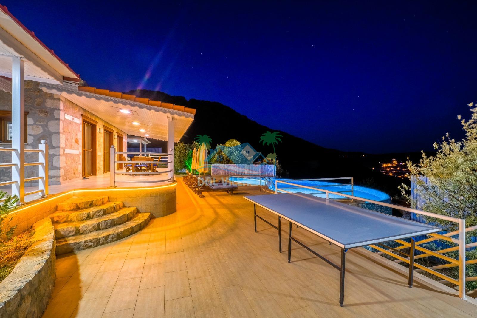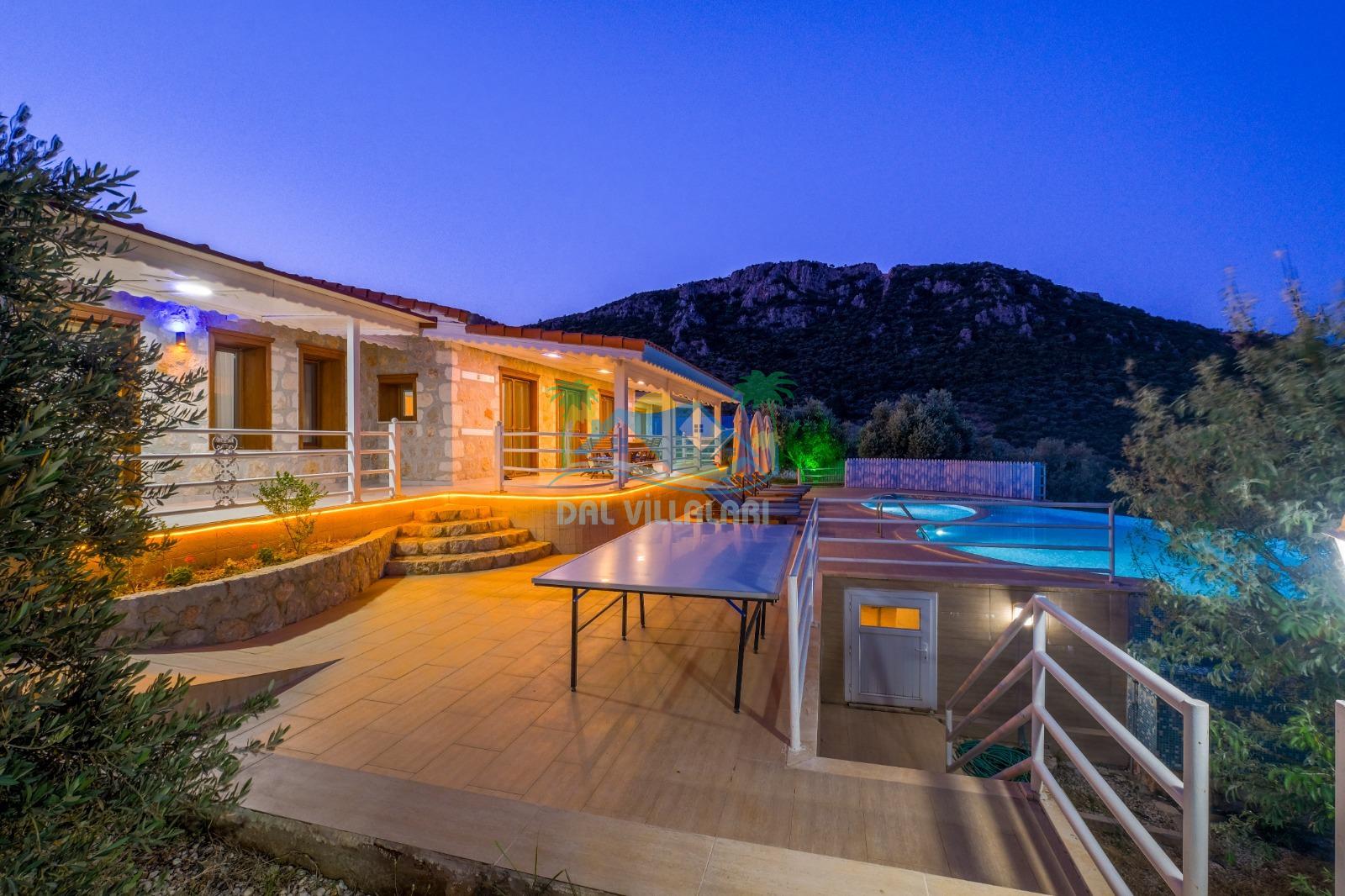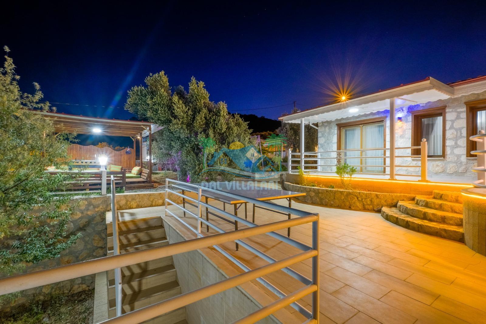 Kalkan Üzümlü’nün doğa ile iç içe atmosferinde konumlanan bu özel villa, hem dinlenmek hem de eğlenceli vakit geçirmek isteyen misafirler için ideal bir seçenektir. Geniş ailelere uygun yapısı, çocuk dostu alanları ve konforlu iç dizaynı ile unutulmaz bir tatil deneyimi sunmaktadır.