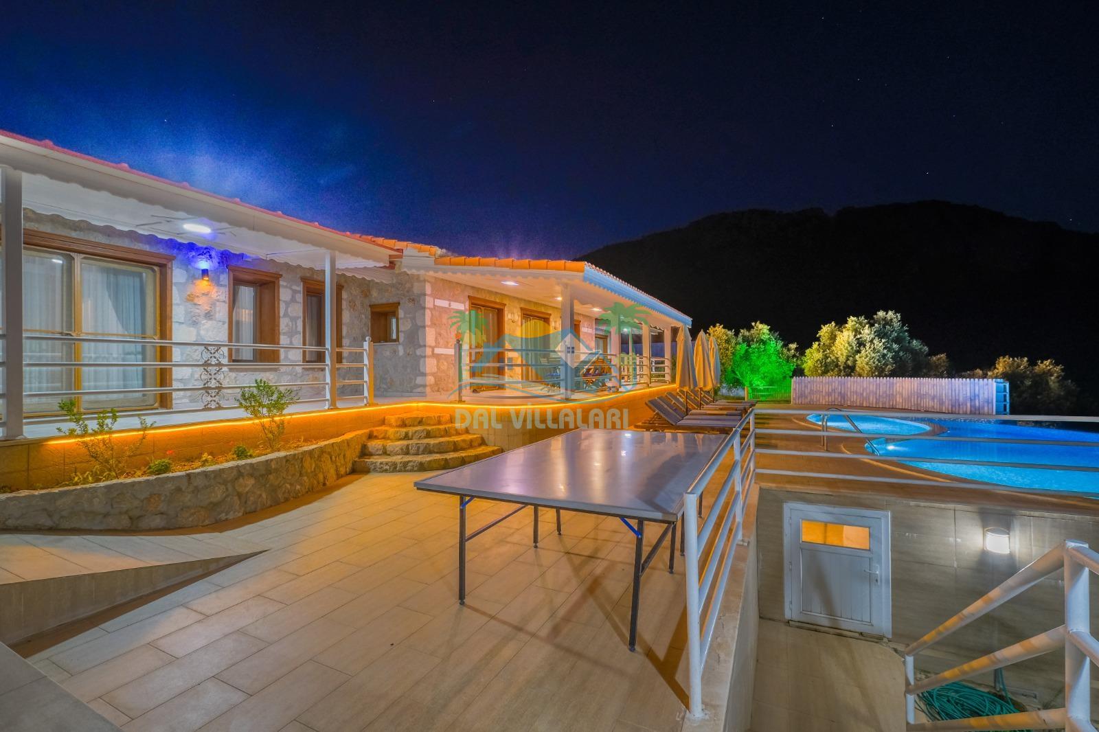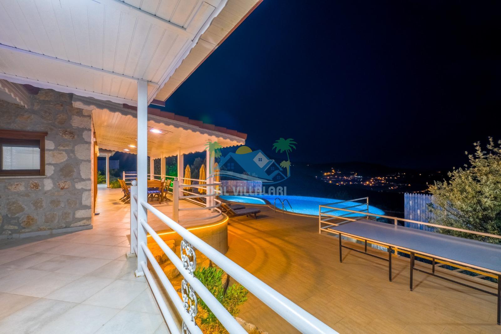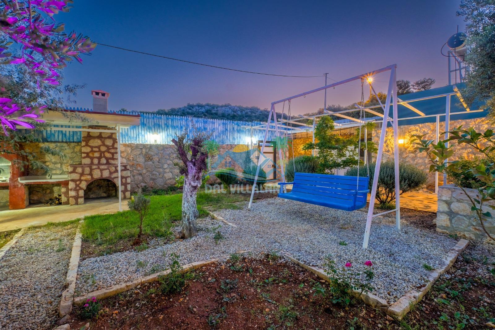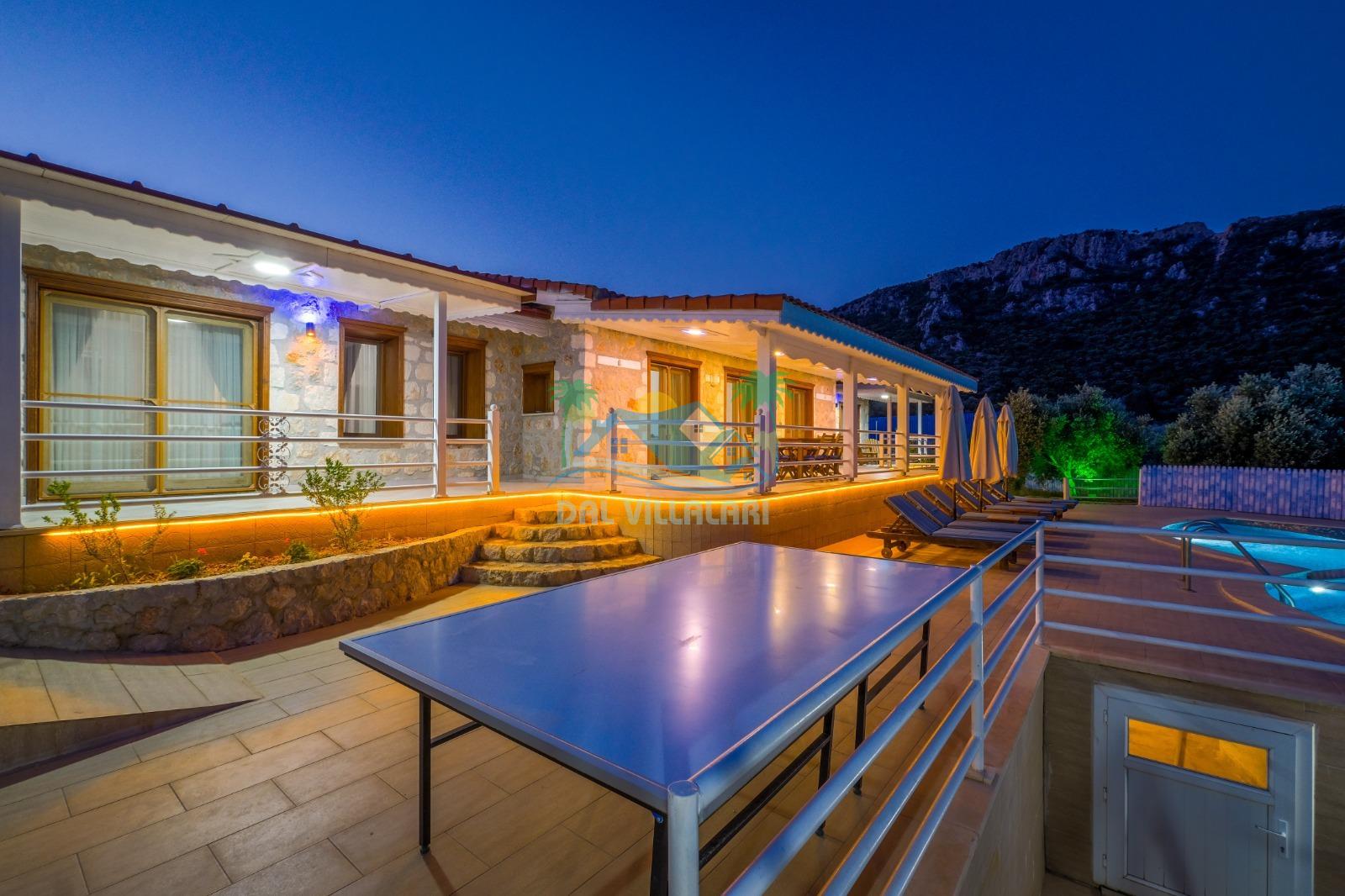 Kalkan Üzümlü’nün doğa ile iç içe atmosferinde konumlanan bu özel villa, hem dinlenmek hem de eğlenceli vakit geçirmek isteyen misafirler için ideal bir seçenektir. Geniş ailelere uygun yapısı, çocuk dostu alanları ve konforlu iç dizaynı ile unutulmaz bir tatil deneyimi sunmaktadır.