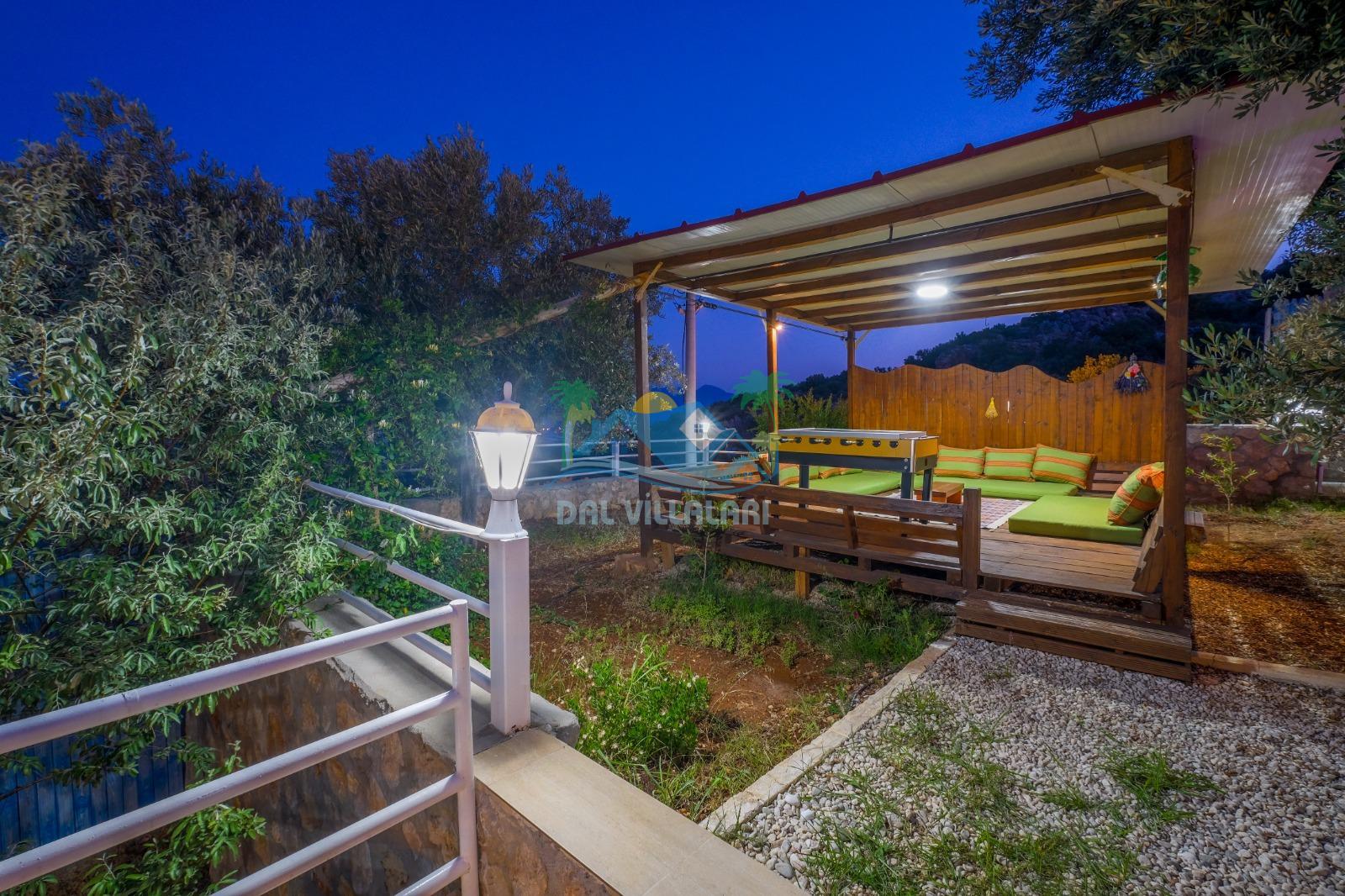Bahçede yer alan çardak (oturma alanı), günün her saatinde keyifli vakit geçirebileceğiniz özel bir alan sunarken, langırt ve masa tenisi gibi aktiviteler sayesinde tatiliniz boyunca eğlenceli anlar yaşayabilirsiniz. Hem dinlenmek hem de vakit geçirmek isteyen misafirler için dengeli bir kullanım alanı sunulmuştur.