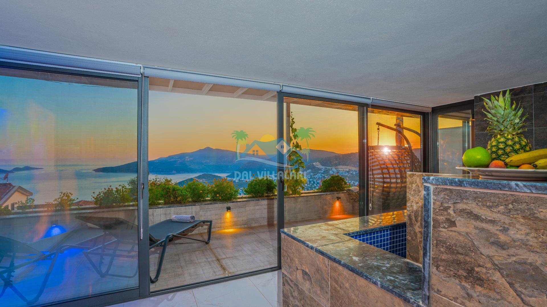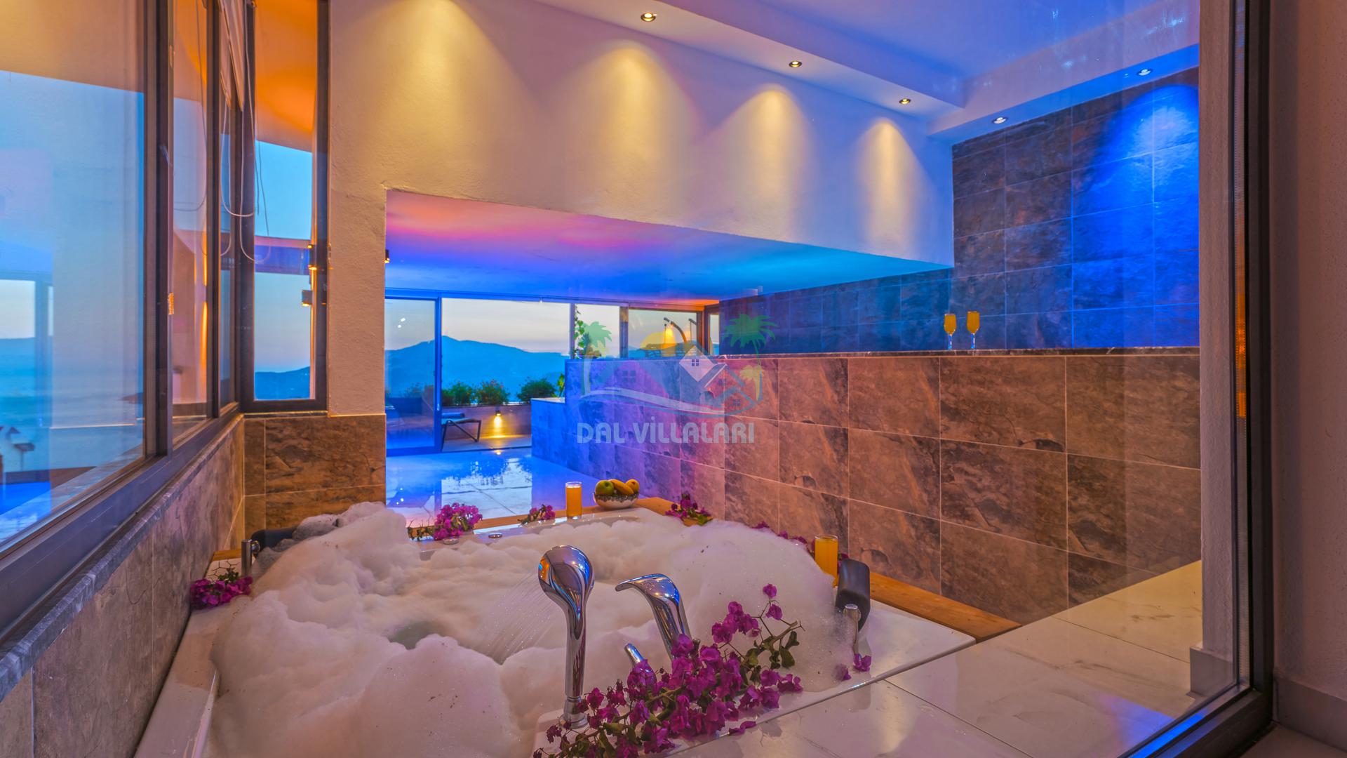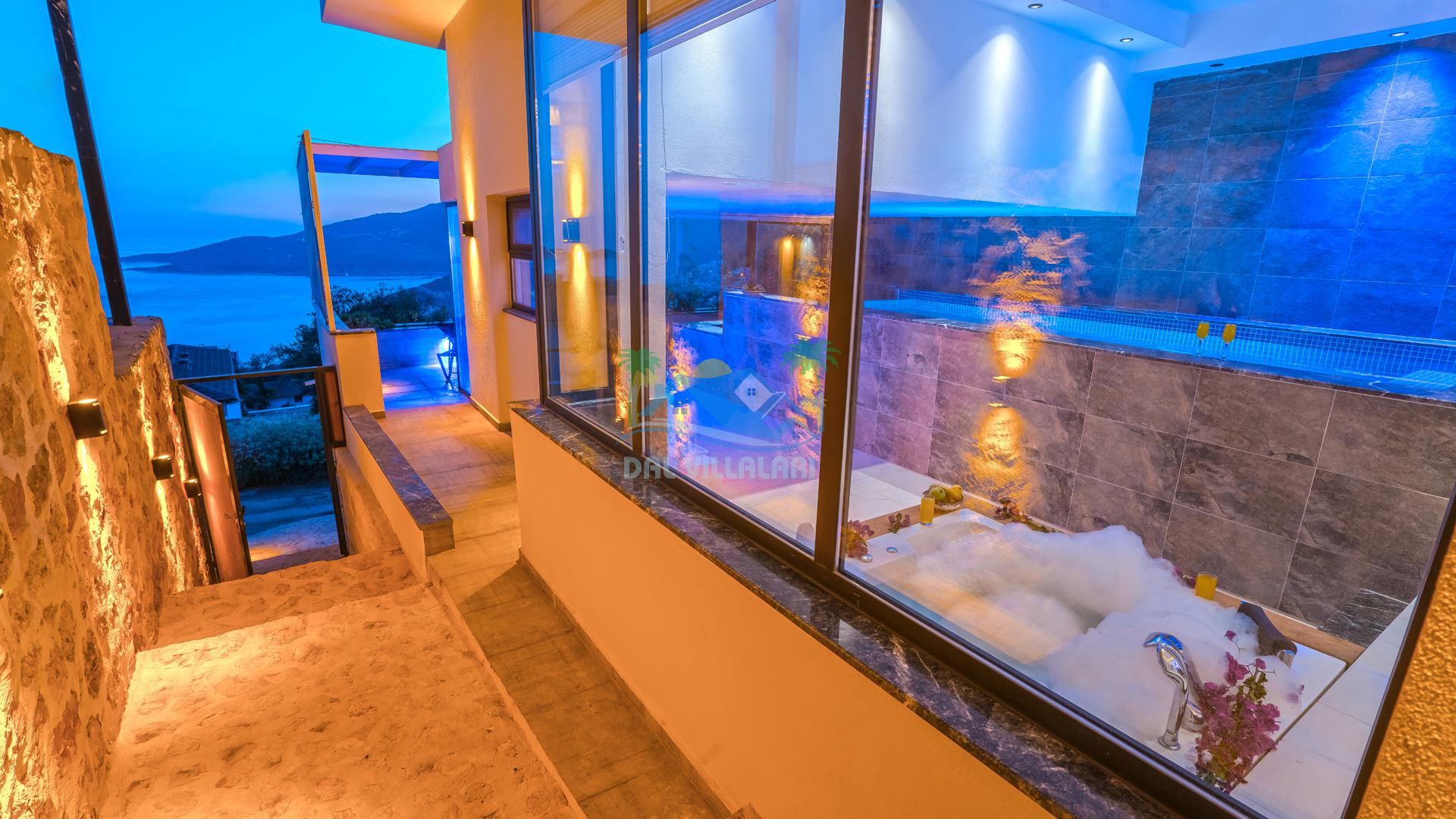 jakuzili, deniz manzaralı, kapalı havuzlu villa