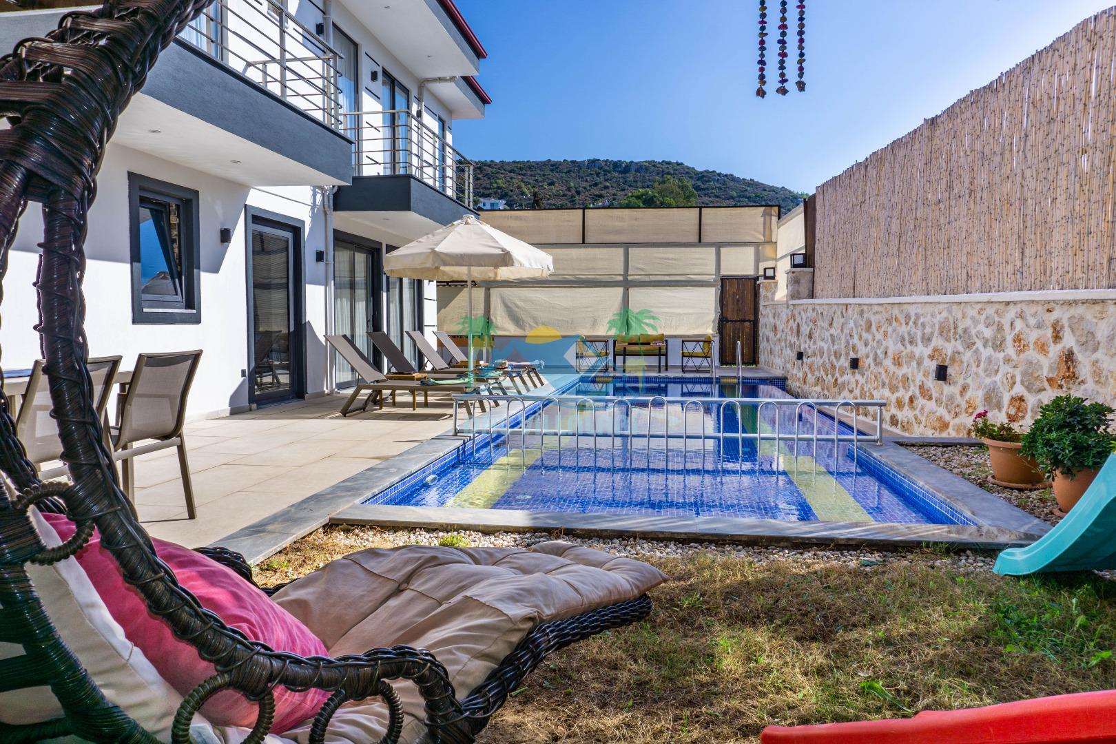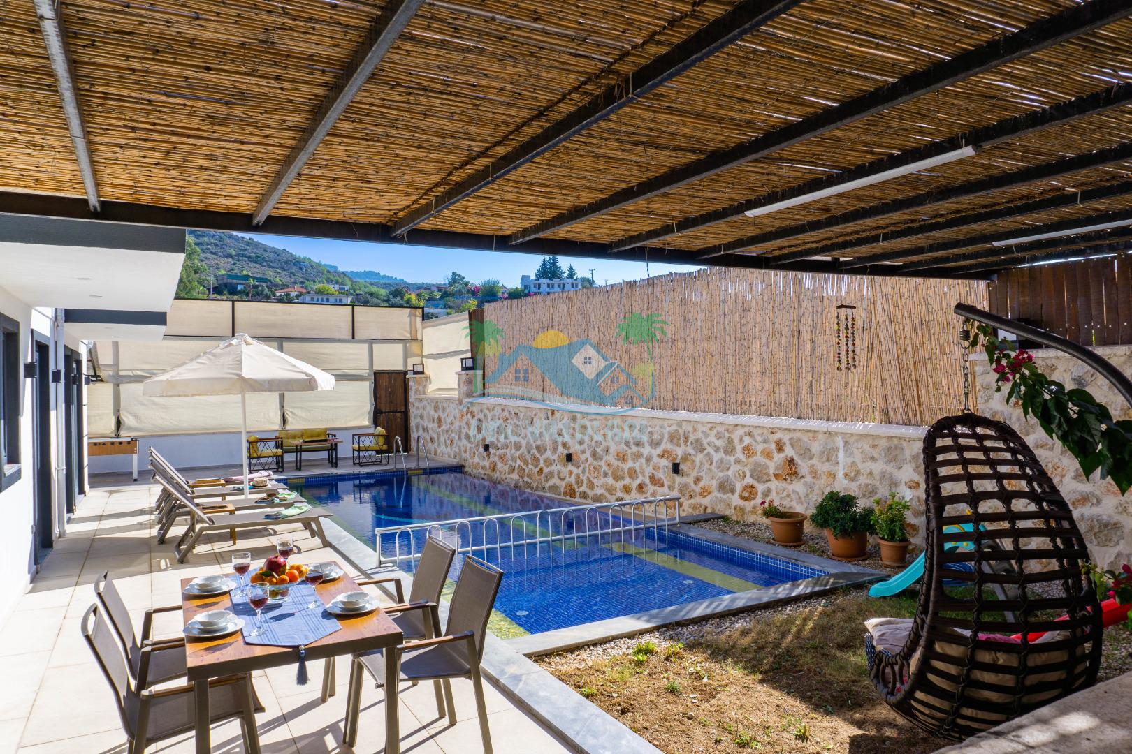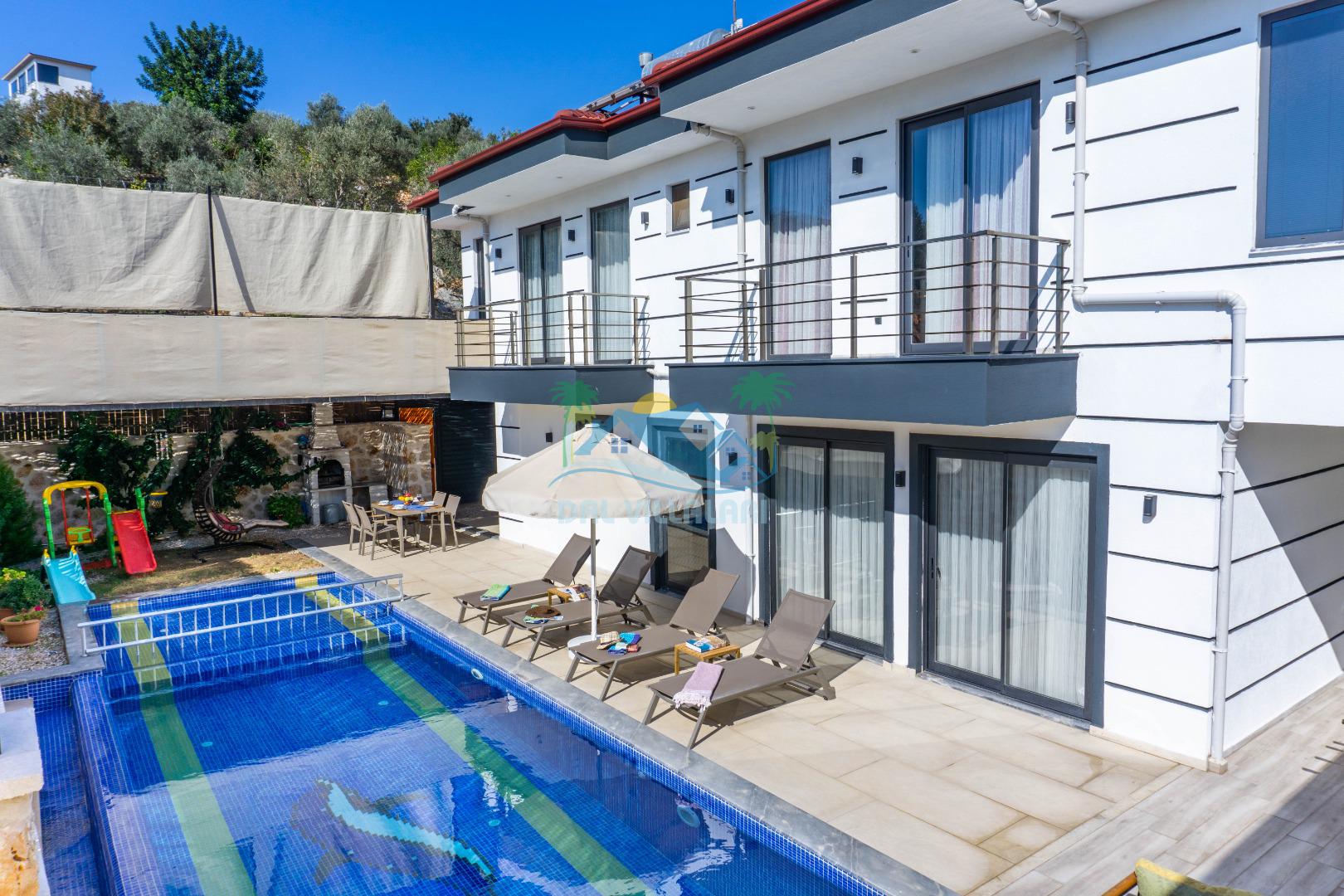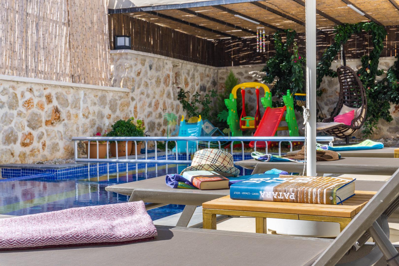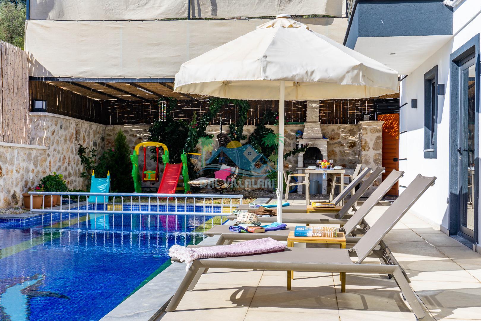 Villa With Pool Uno, Kalkan Patara mevkiinde yer alan havuzu tam korunaklı villamızdır. Villamız balayı çiftleri için ve çocuklu aileler için çok ideal bir seçenektir. Ayrıca eğlenceli vakit geçirebilmesi adına villamızda çocuk oyun parkı, salıncak, langırt bulunmaktadır. Bu özellikleri sayesinde aileniz ile keyifli anlar yaşayabilecek ve tatilinizin hiç bitmemesini isteyeceksiniz.