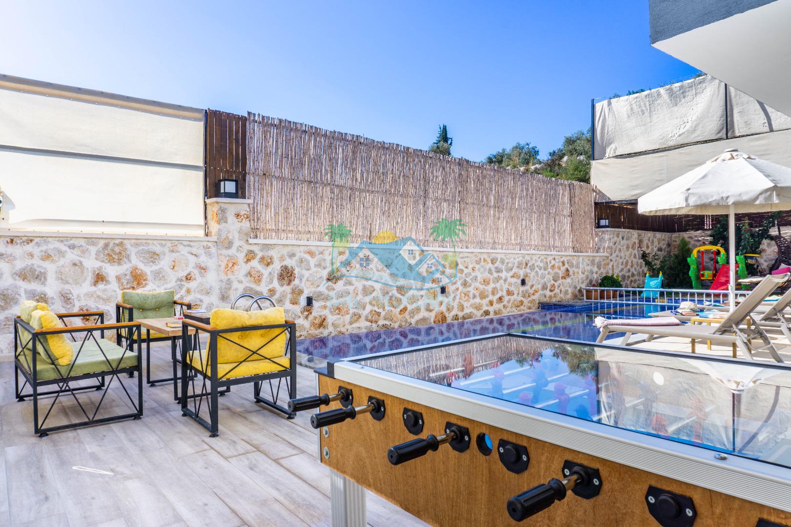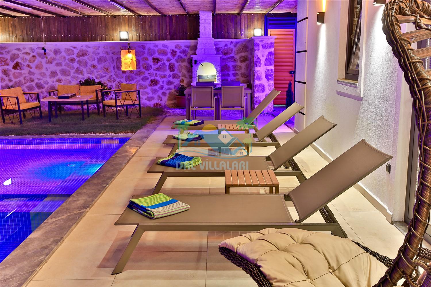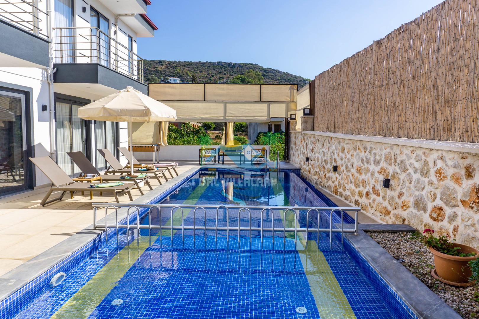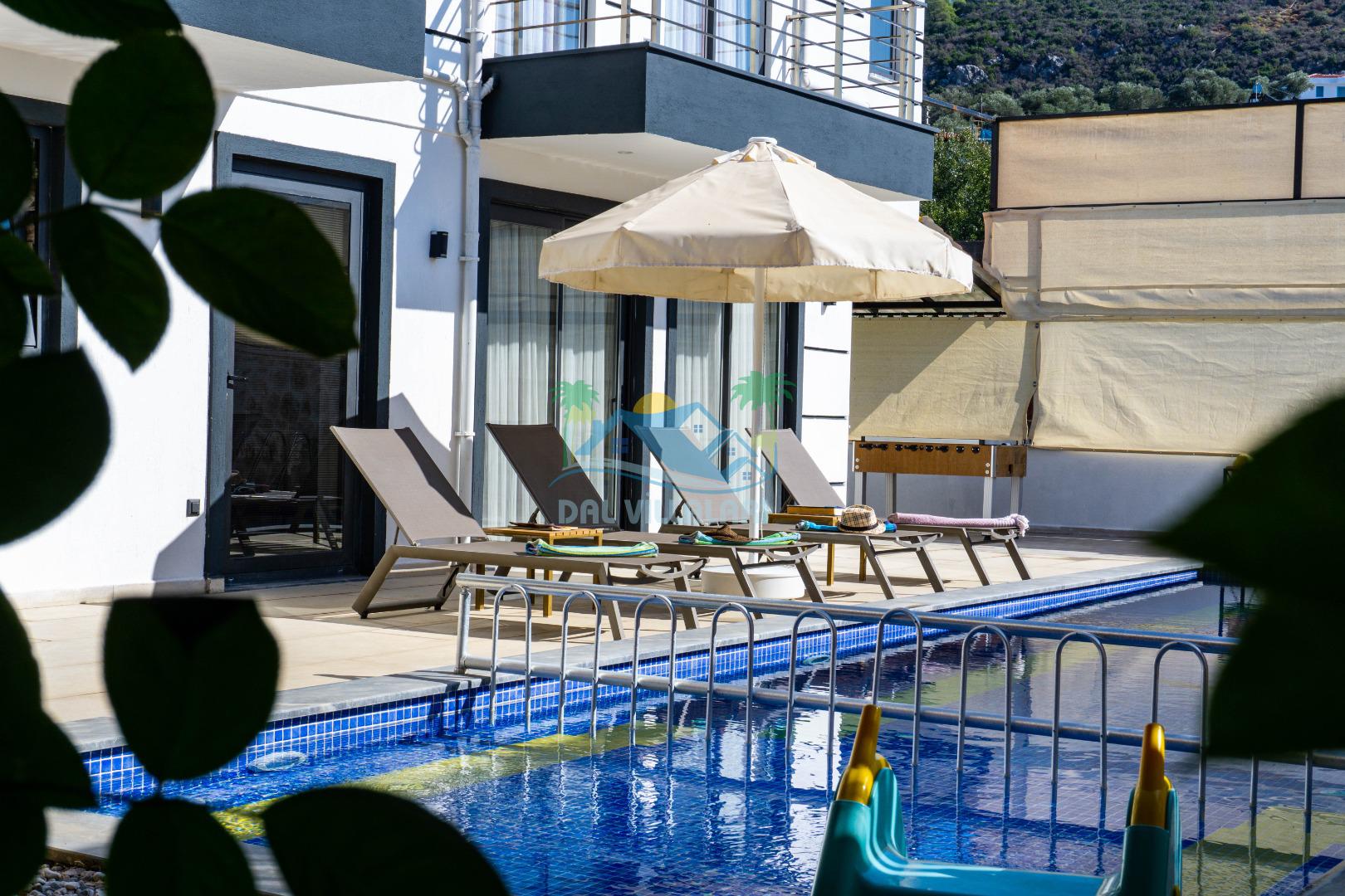 Villa With Pool Uno, Kalkan Patara mevkiinde yer alan havuzu tam korunaklı villamızdır. Villamız balayı çiftleri için ve çocuklu aileler için çok ideal bir seçenektir. Ayrıca eğlenceli vakit geçirebilmesi adına villamızda çocuk oyun parkı, salıncak, langırt bulunmaktadır. Bu özellikleri sayesinde aileniz ile keyifli anlar yaşayabilecek ve tatilinizin hiç bitmemesini isteyeceksiniz.