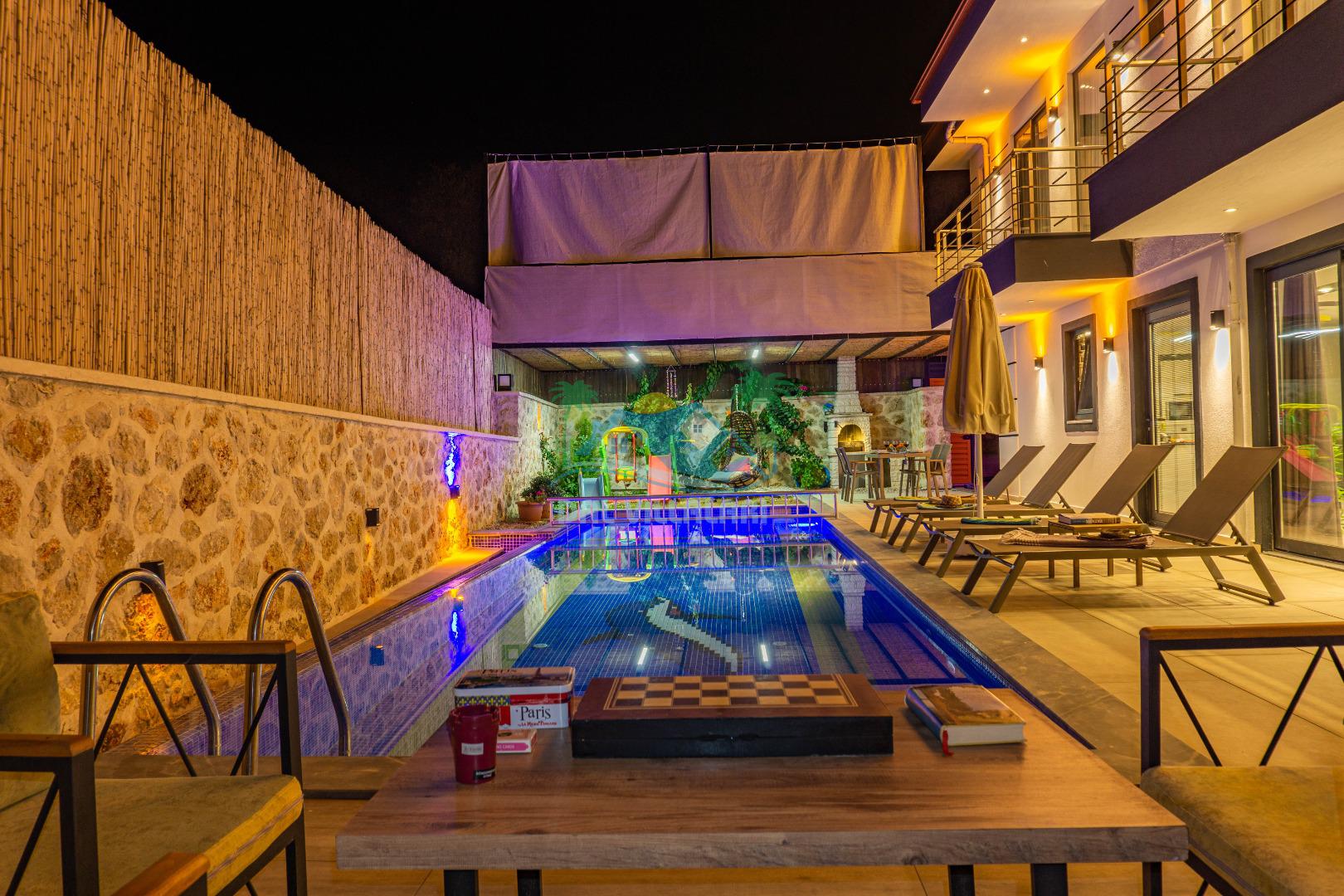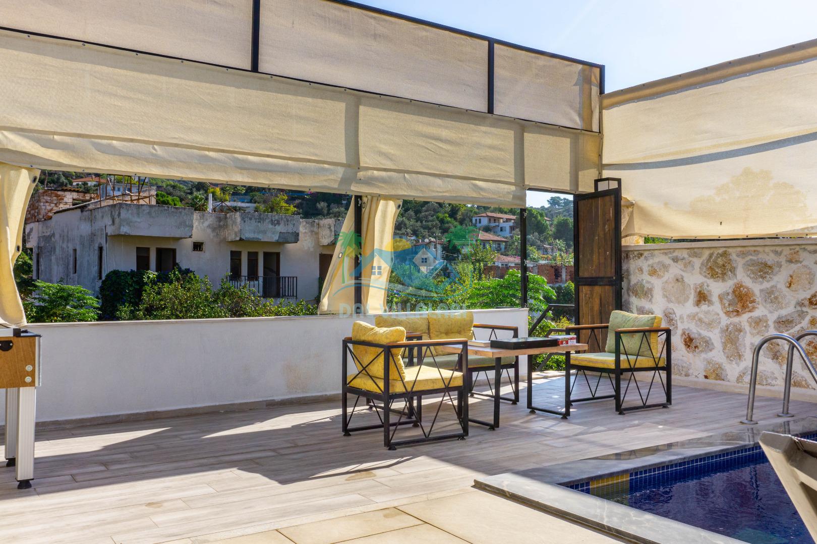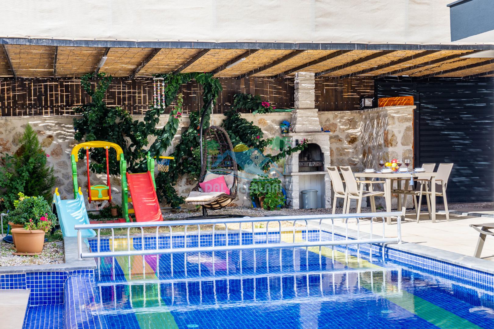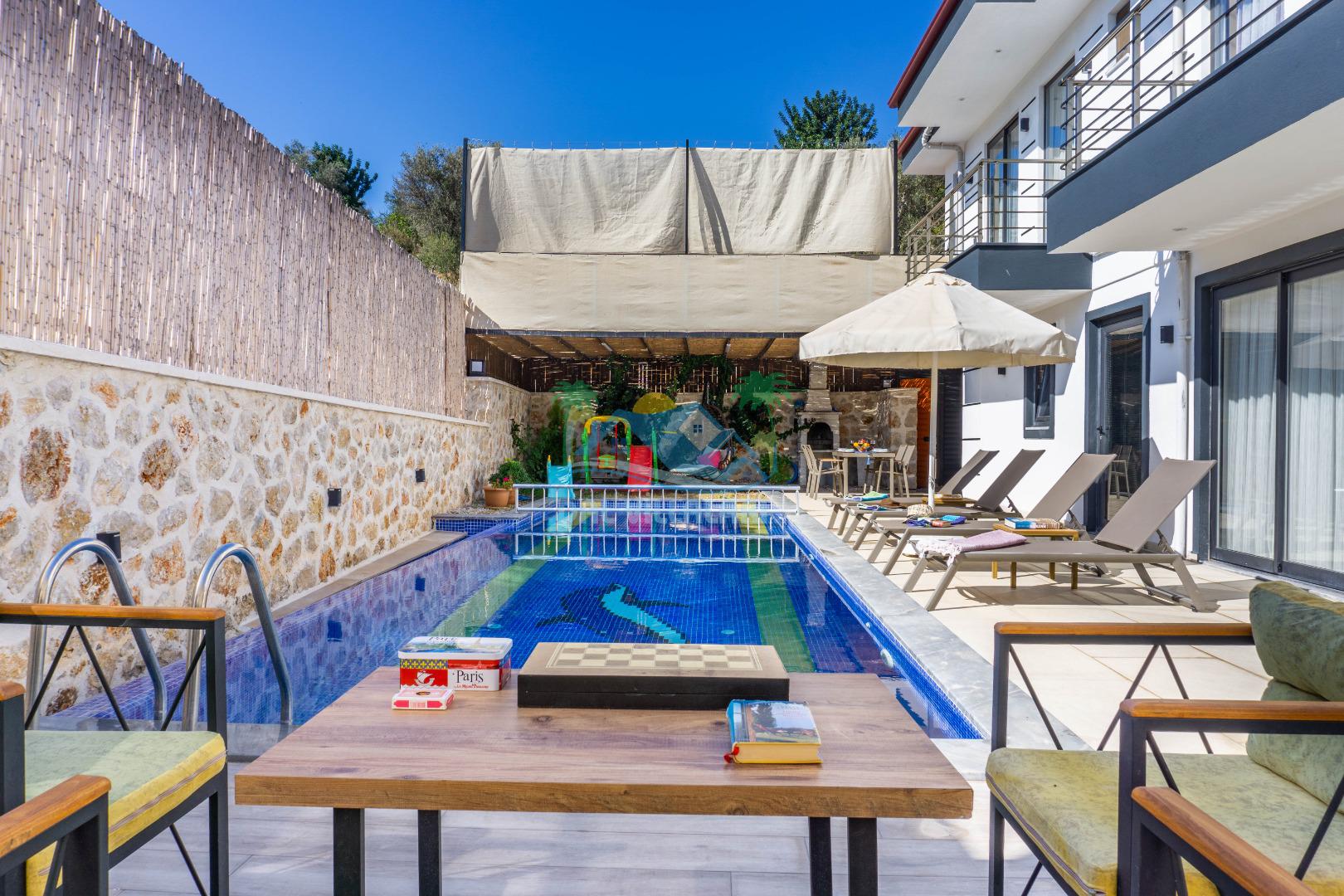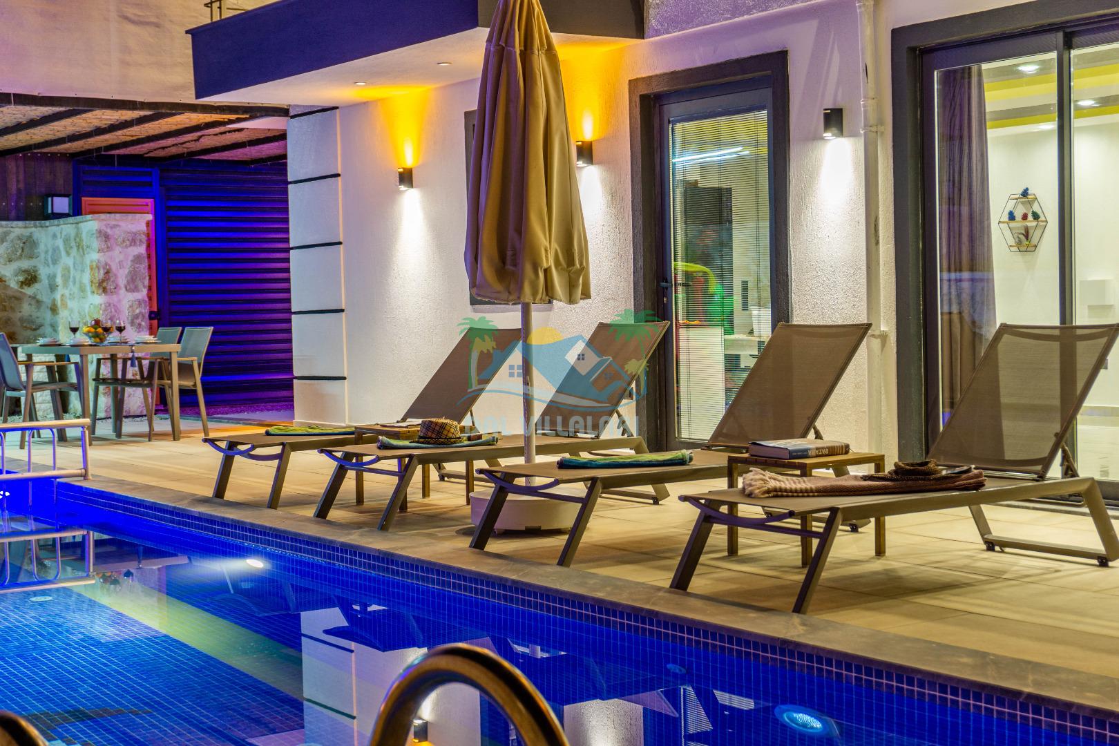 Villa With Pool Uno, Kalkan Patara mevkiinde yer alan havuzu tam korunaklı villamızdır. Villamız balayı çiftleri için ve çocuklu aileler için çok ideal bir seçenektir. Ayrıca eğlenceli vakit geçirebilmesi adına villamızda çocuk oyun parkı, salıncak, langırt bulunmaktadır. Bu özellikleri sayesinde aileniz ile keyifli anlar yaşayabilecek ve tatilinizin hiç bitmemesini isteyeceksiniz.