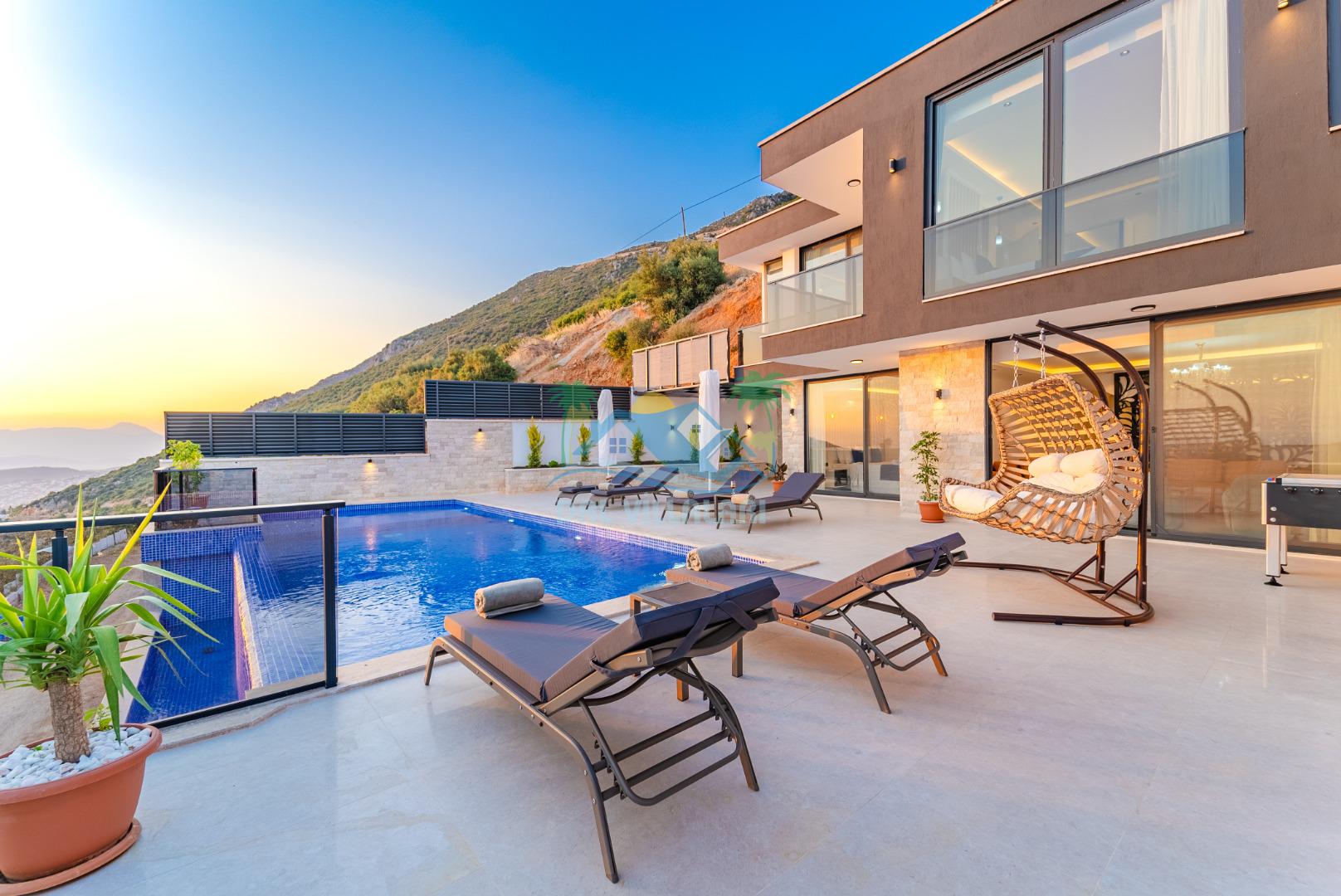 -Villa Yeliz muhafazakar aileler için korunaklı havuz terasına sahiptir.
