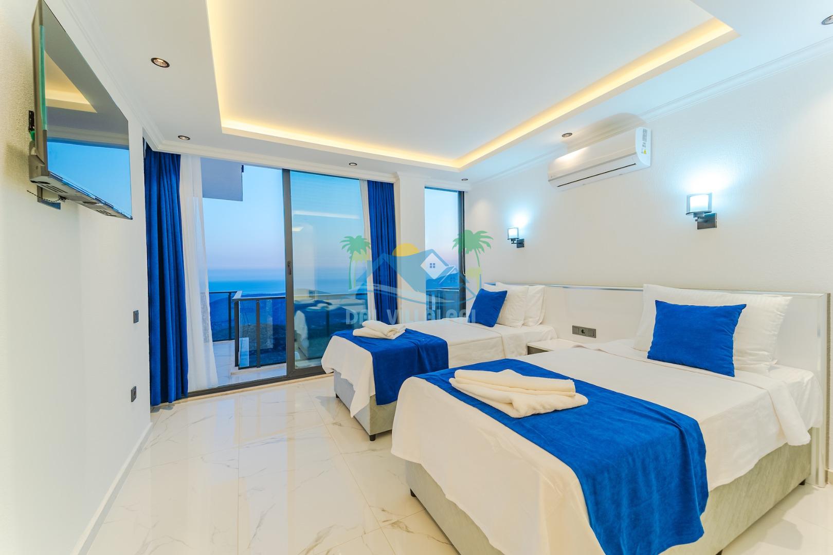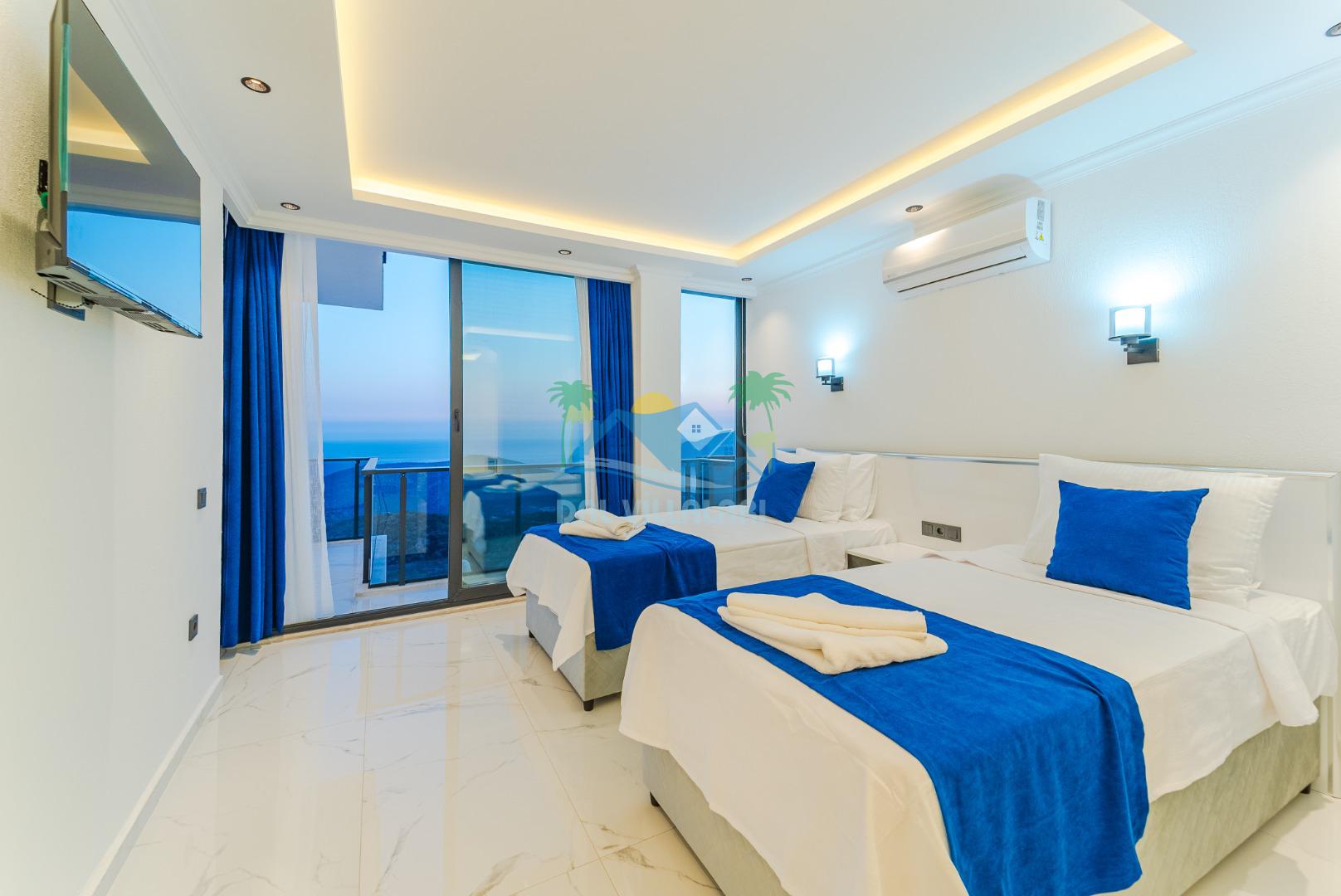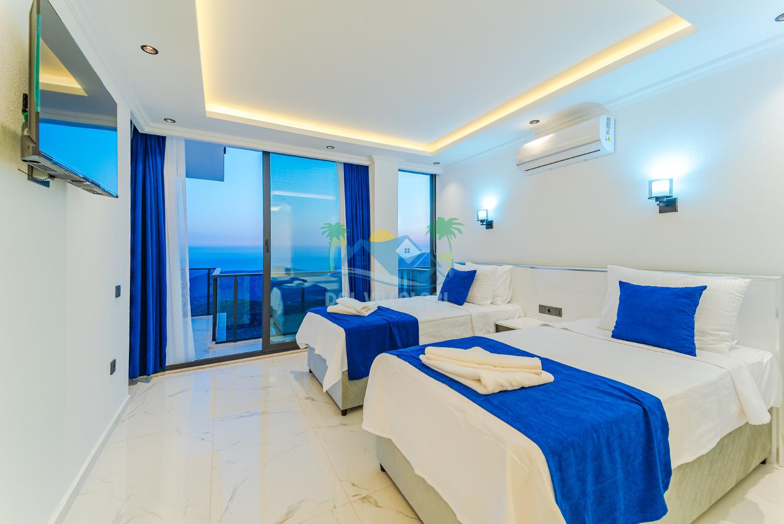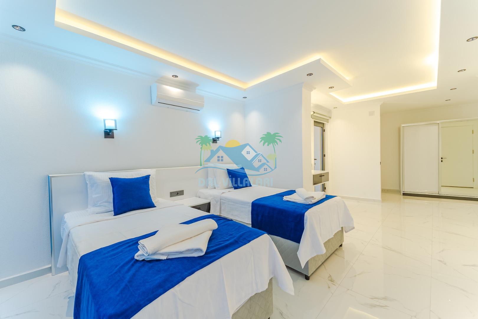 -Villa Yeliz 5 yatak odasına sahip olup 10 kişi kapasitelidir.Villamızın üç odasında çift kişilik,iki odasında iki tek kişilik yatak bulunmaktadır.Villamızın odalarında kendine ait tuvalet ve banyosu yer almaktadır.