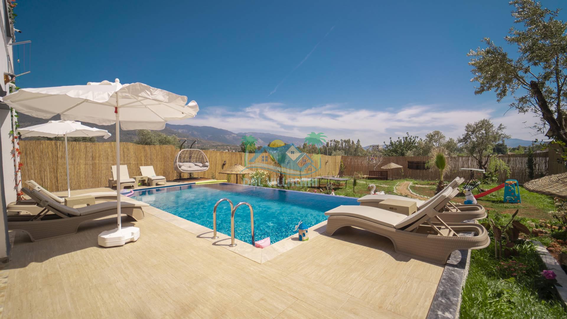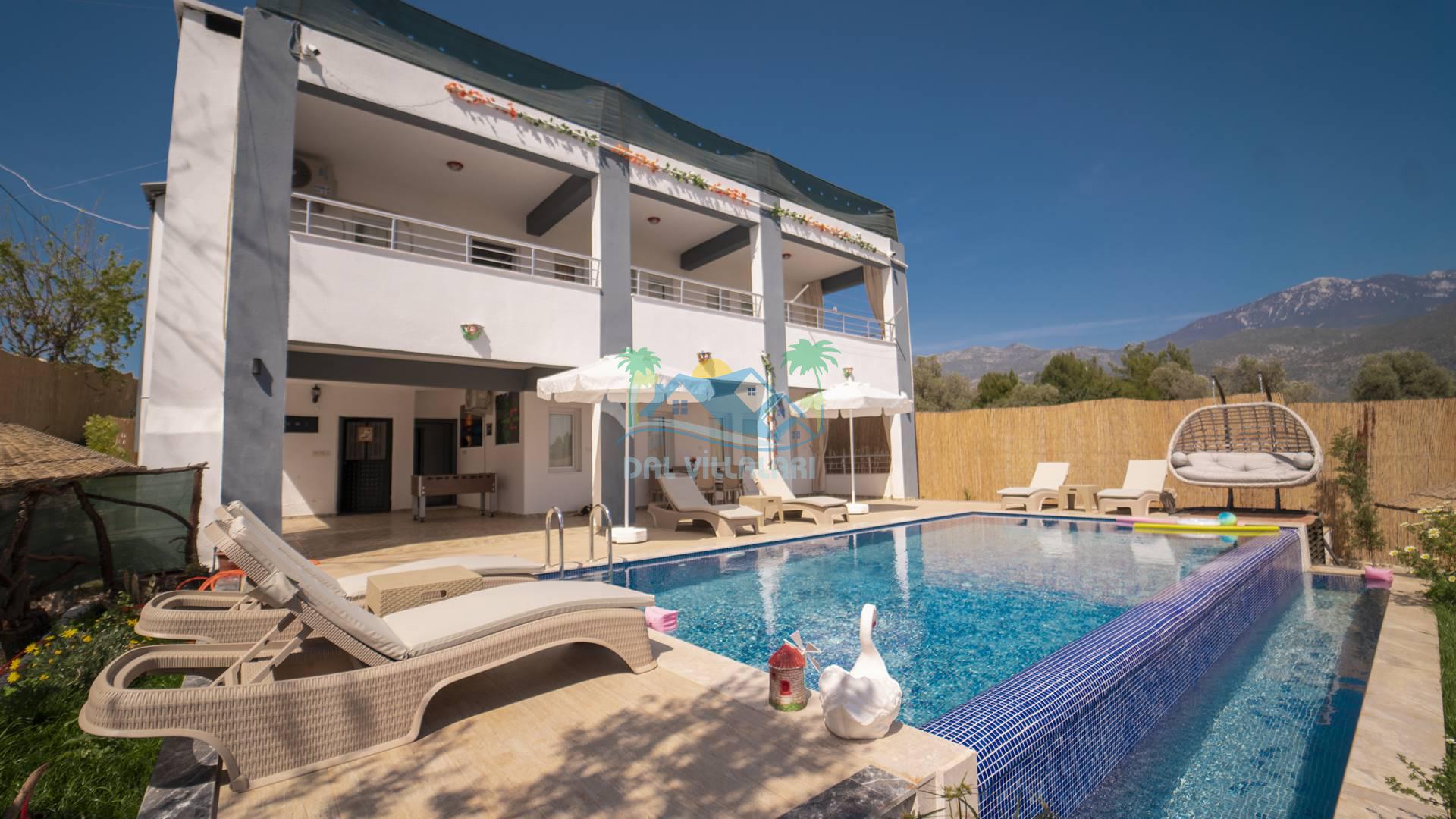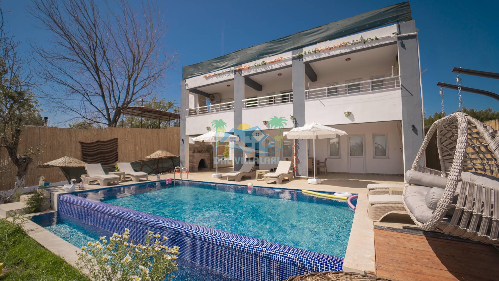 Kalkan’ın sakin ve doğayla iç içe bölgelerinden Çavdır Mahallesi’nde konumlanan bu özel villa; 5 yatak odası ve 10 kişilik konaklama kapasitesi ile kalabalık aileler için konforlu ve ferah bir tatil imkanı sunar. Geniş bahçesi, özel havuz alanı ve çocuklara özel detayları sayesinde hem dinlenmek hem de keyifli vakit geçirmek isteyen misafirler için ideal bir seçenektir.