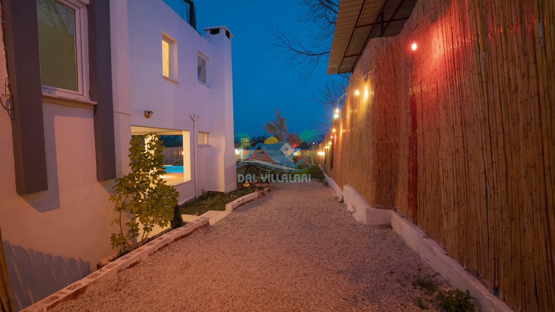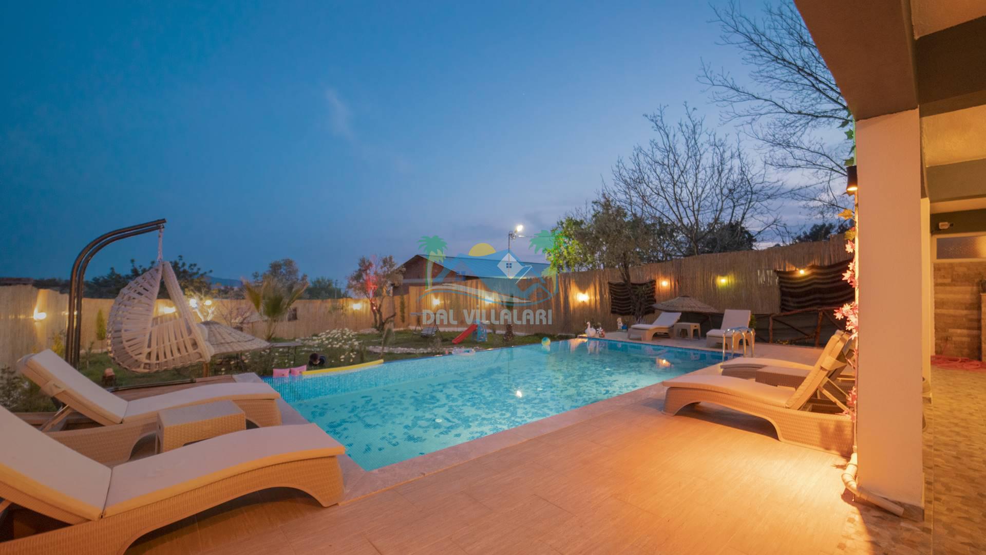 Villanın en büyük avantajlarından biri geniş bahçesi ve rahat kullanım sunan dış alan düzenidir. Güneşlenme alanlarında şezlonglarda dinlenebilir, bahçede sevdiklerinizle huzurlu vakit geçirebilirsiniz. Doğa ile iç içe konumu sayesinde kalabalıktan uzak, sakin bir atmosfer arayan misafirler için oldukça uygundur.